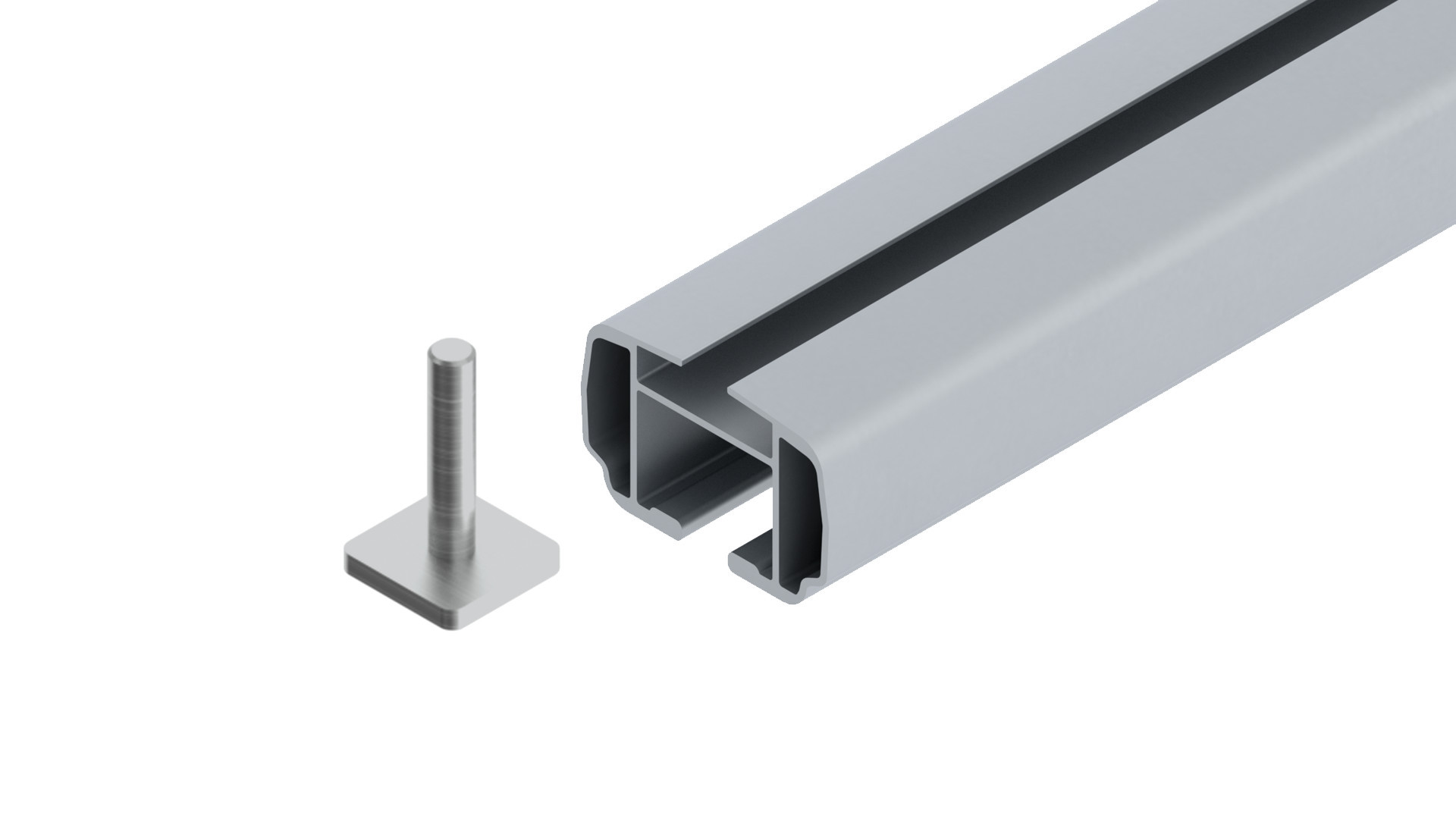 – Robusto profilo in lega di alluminio anodizzato, con predisposizione per l’inserimento dei connettori rapidi “T” nella canalina superiore.