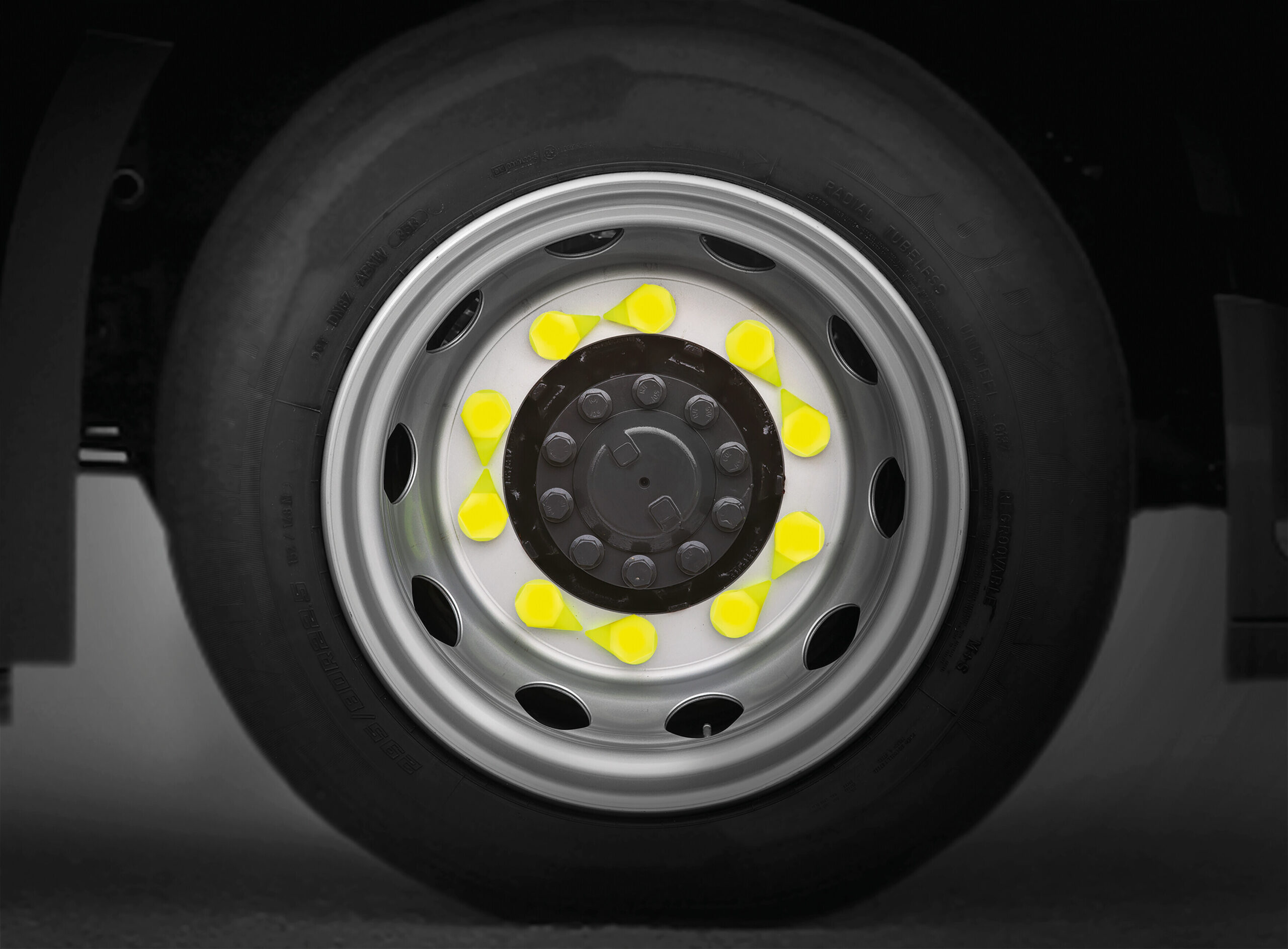Dustite LR®, indicatori di serraggio per dado ruota con cappuccio antipolvere, set 20 pz – 30 mm – Giallo fluo