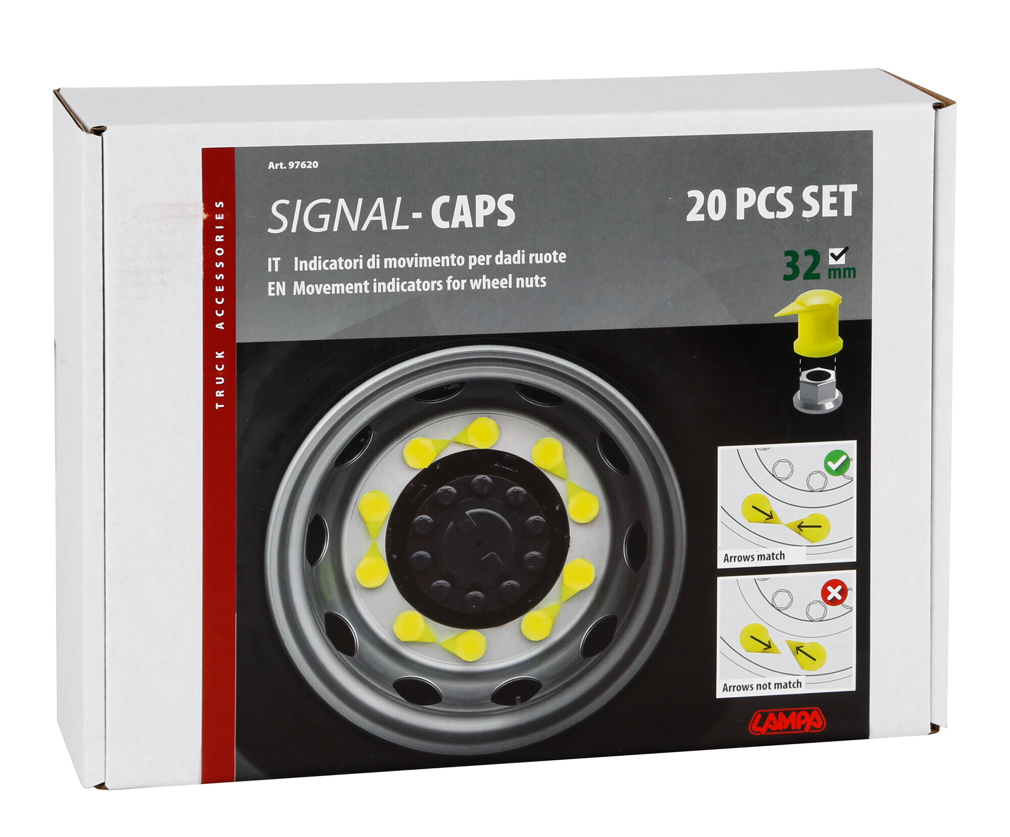 Indicatori di movimento per dadi ruote, set 20 pz – Ø 32 mm
