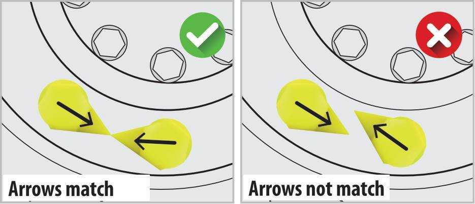 Gli indicatori vanno installati a coppie sui dadi delle ruote, con le punte allineate una di fronte all’altra. il successivo disallineamento delle punte indica l’allentamento dei bulloni.