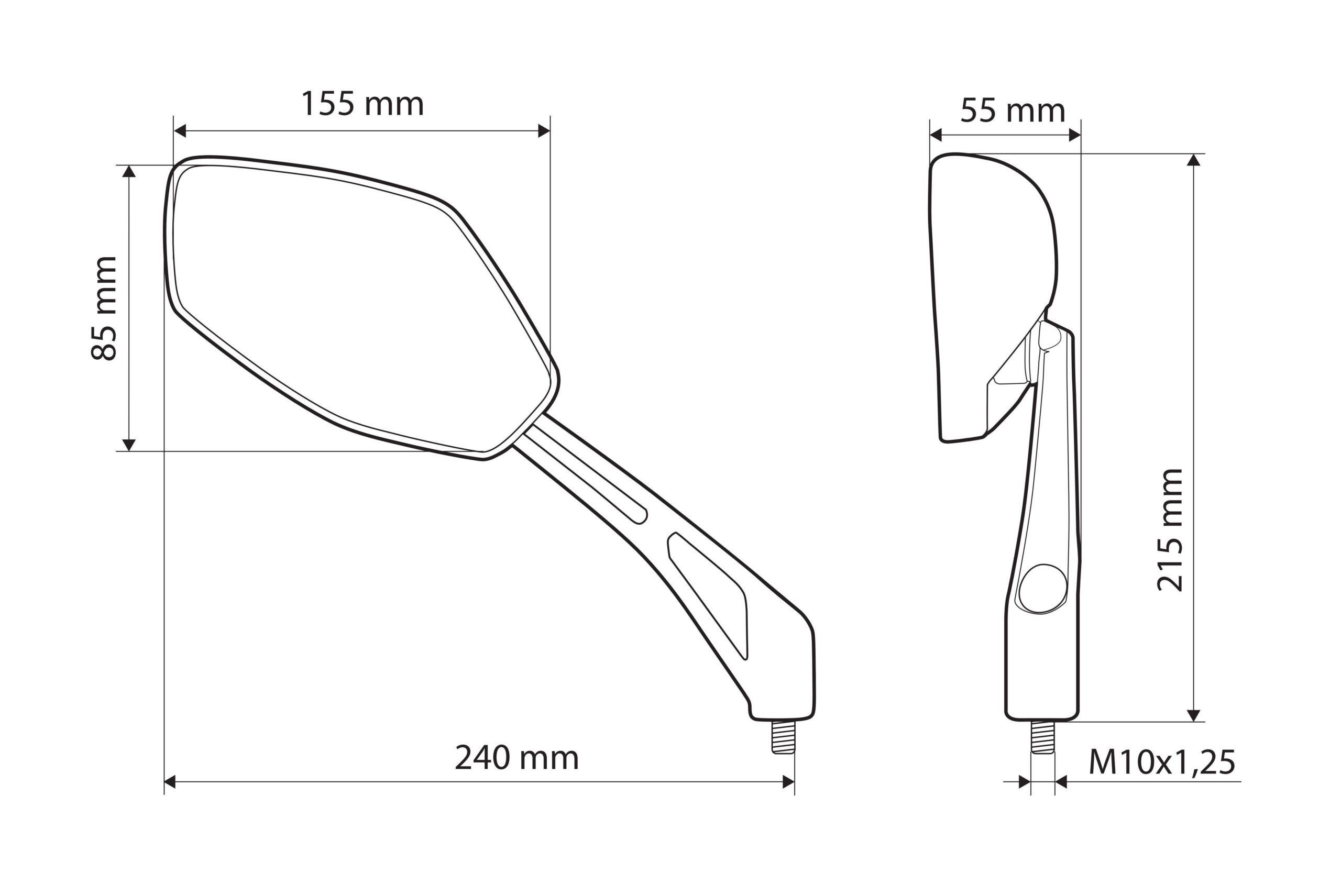 Estensore e sollevatore specchi moto – Filetto M10 sinistro