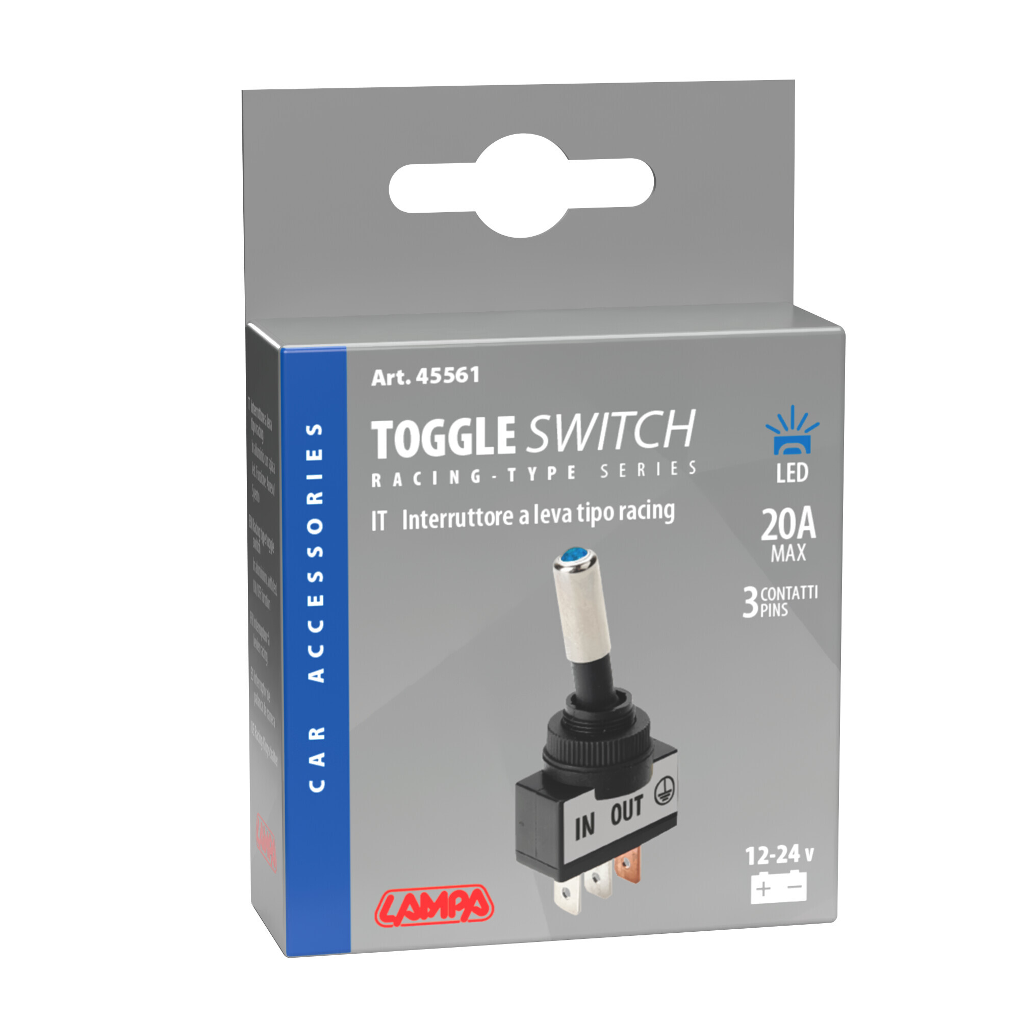 Interruttore a leva tipo Racing, in alluminio con spia a Led – 12/24V – Blu – 20A