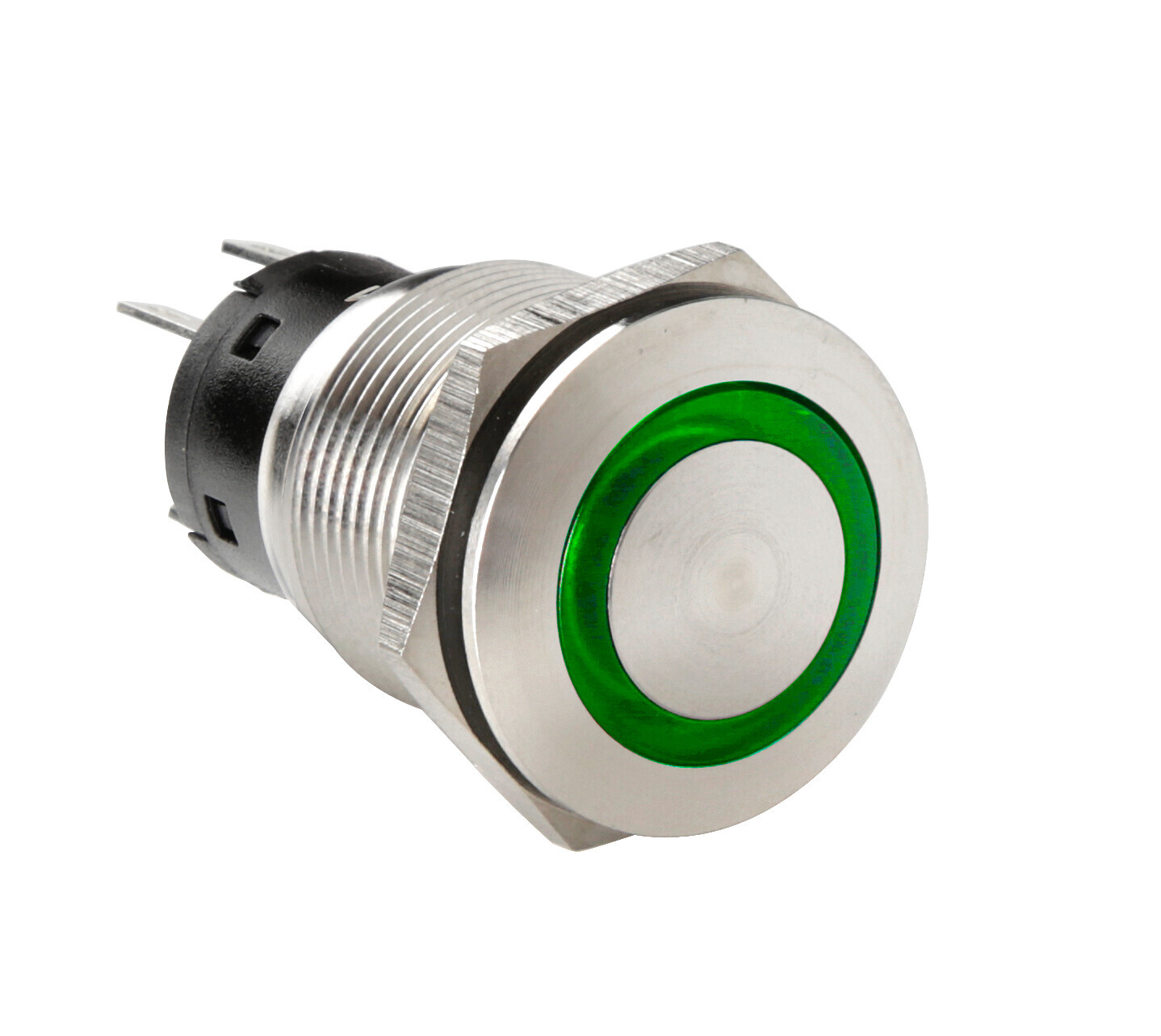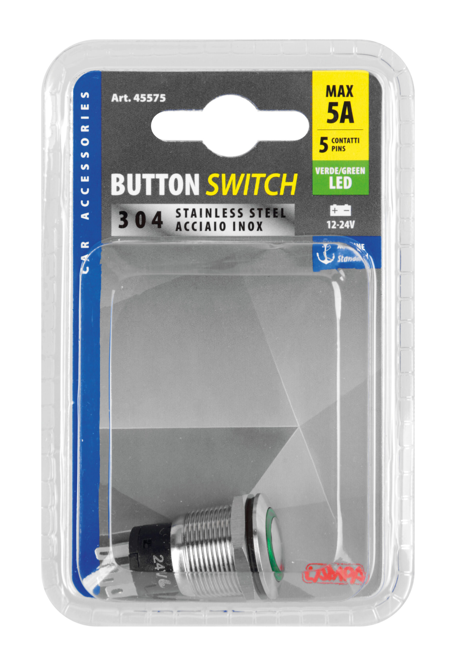 Interruttore a pulsante con spia a Led, 12/24V – Verde