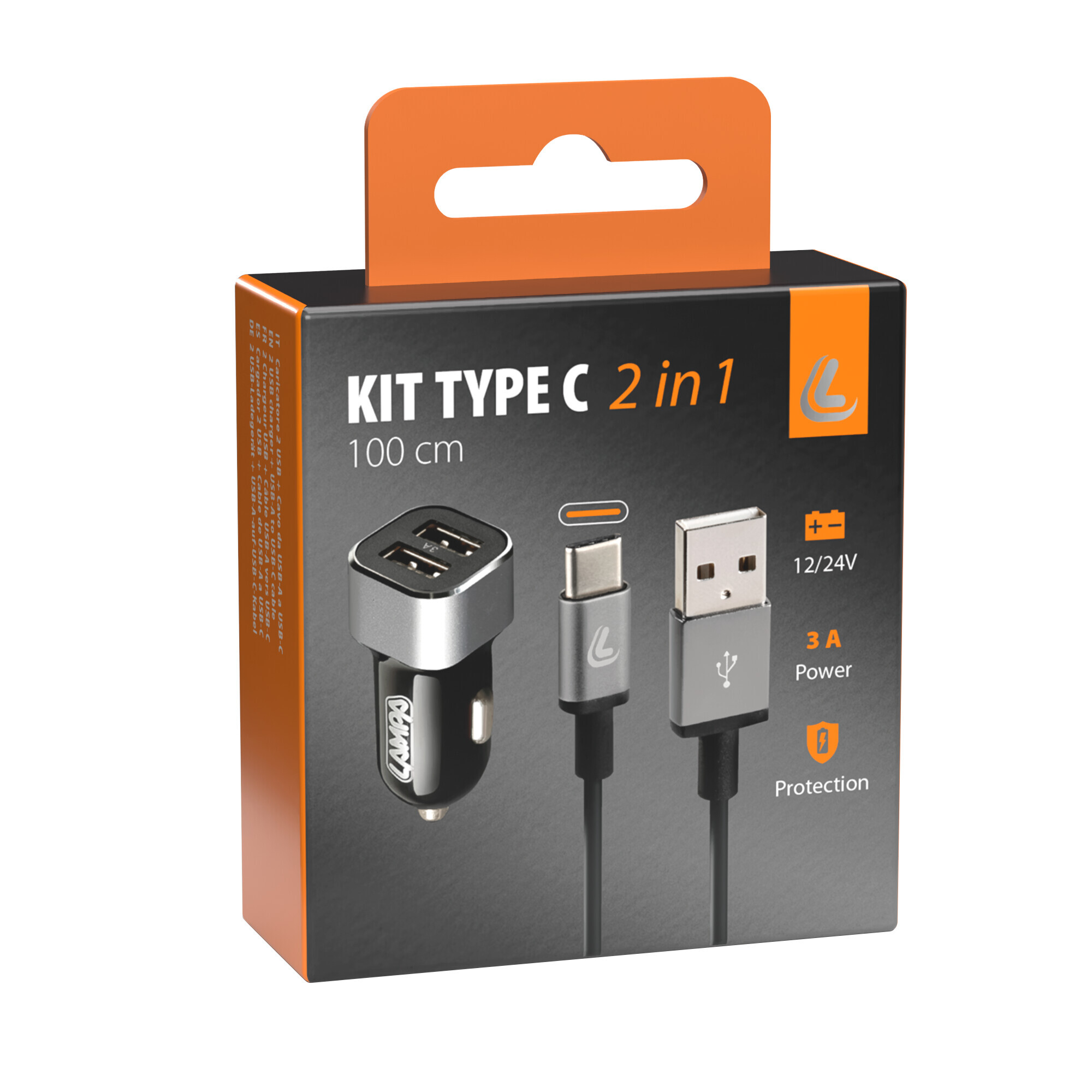 Kit 2 in 1 Usb Type-C – Fast Charge – 12/24V