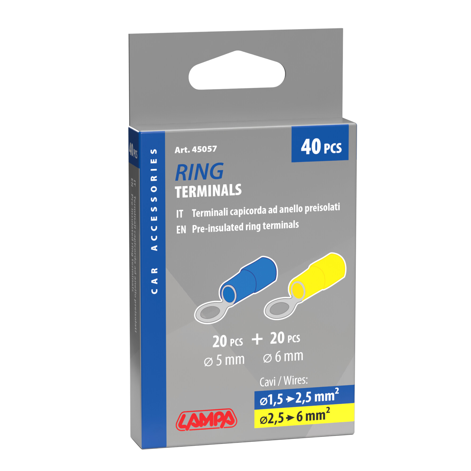 Kit 40 terminali-capicorda ad anello – Giallo/Blu