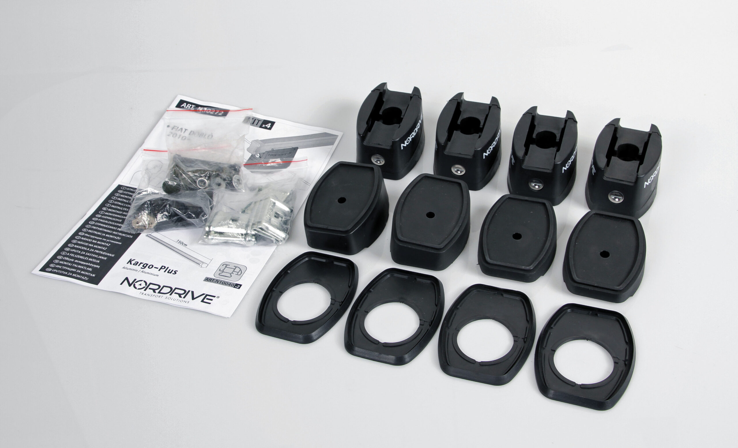 I kit di ancoraggio utilizzano le predisposizioni di ogni singolo modello di veicolo e sono composti da tamponi in appoggio specifici, che sostengono le basi di supporto della barra.