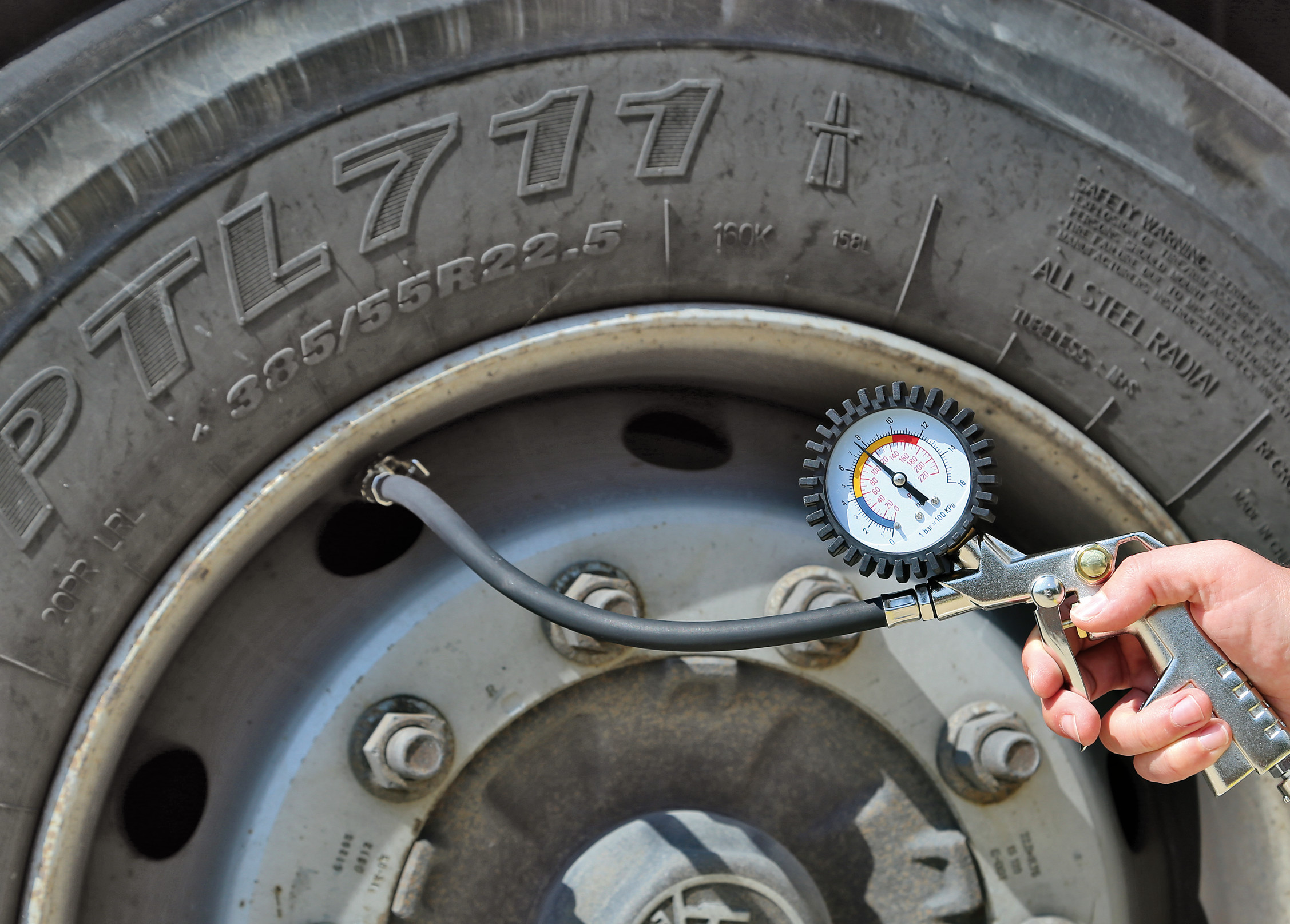 Misura pressione pneumatici con manometro 270°
