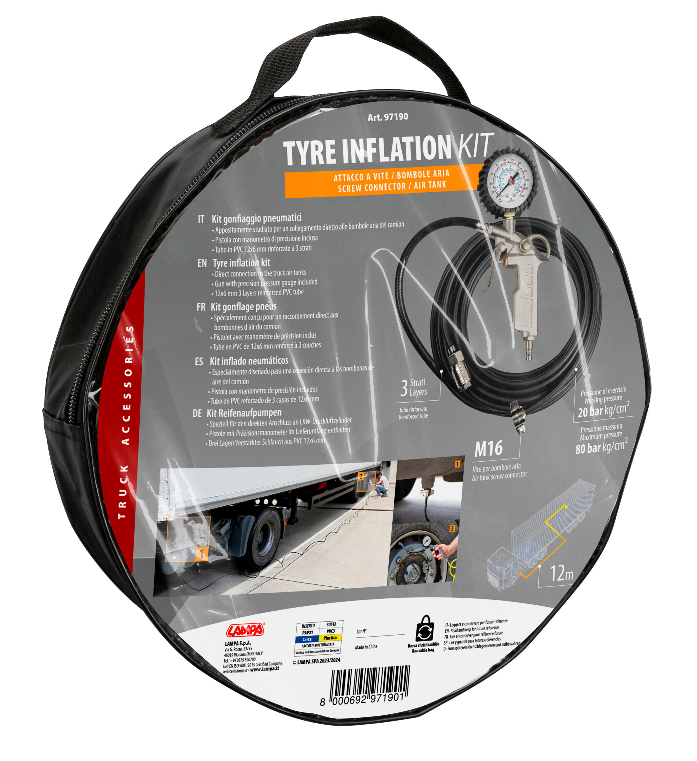 Collegamento diretto alle bombole aria del camion.
