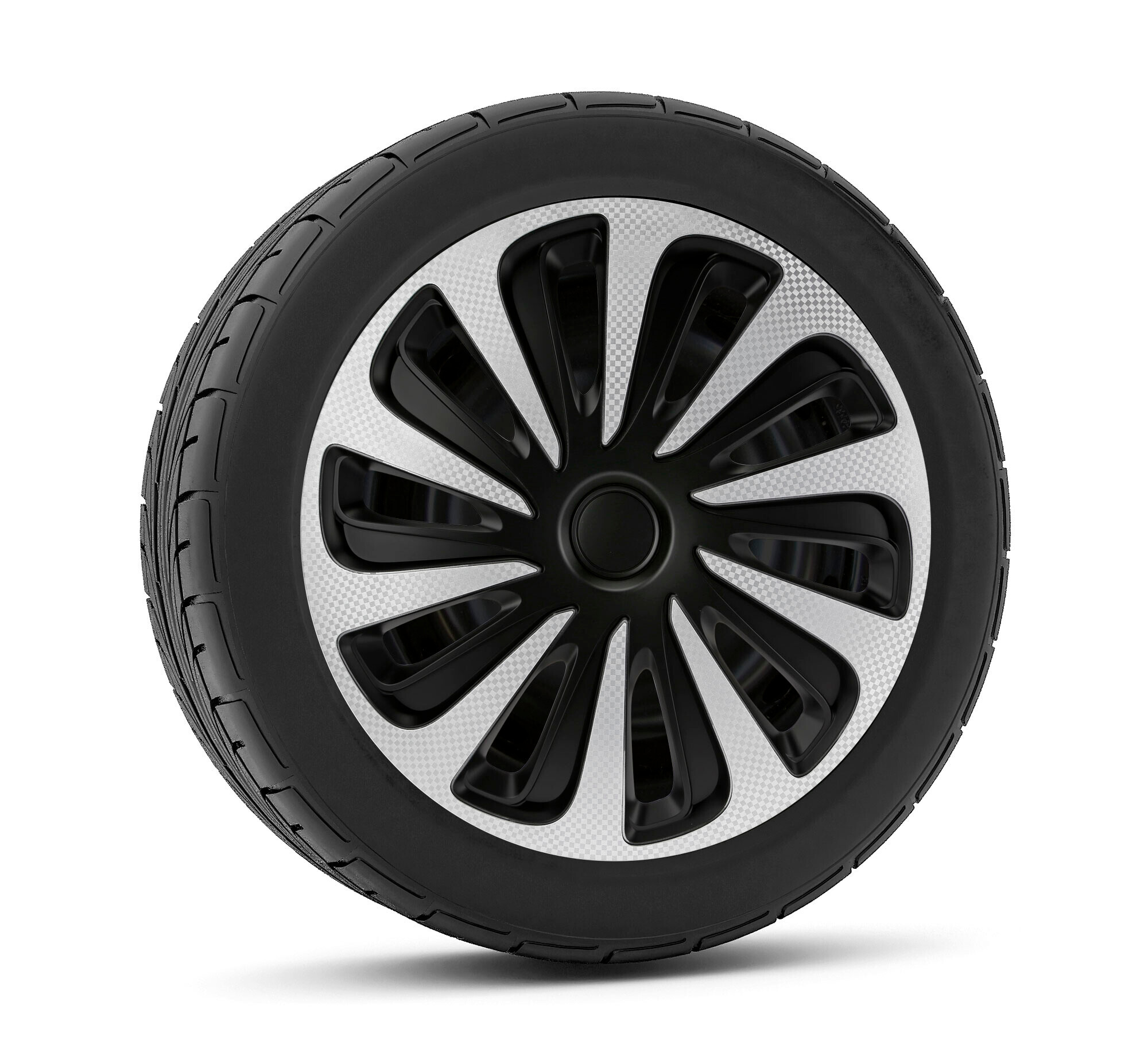 Kojin Carbon Silver-Black – Set 4 copricerchi – Ø 14″