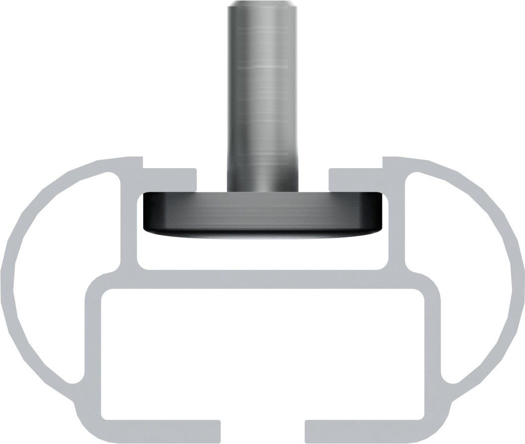 – Scanalatura inferiore per lo scorrimento “a scomparsa” degli attacchi con profilo in gomma per sigillare la scanalatura dopo il montaggio.