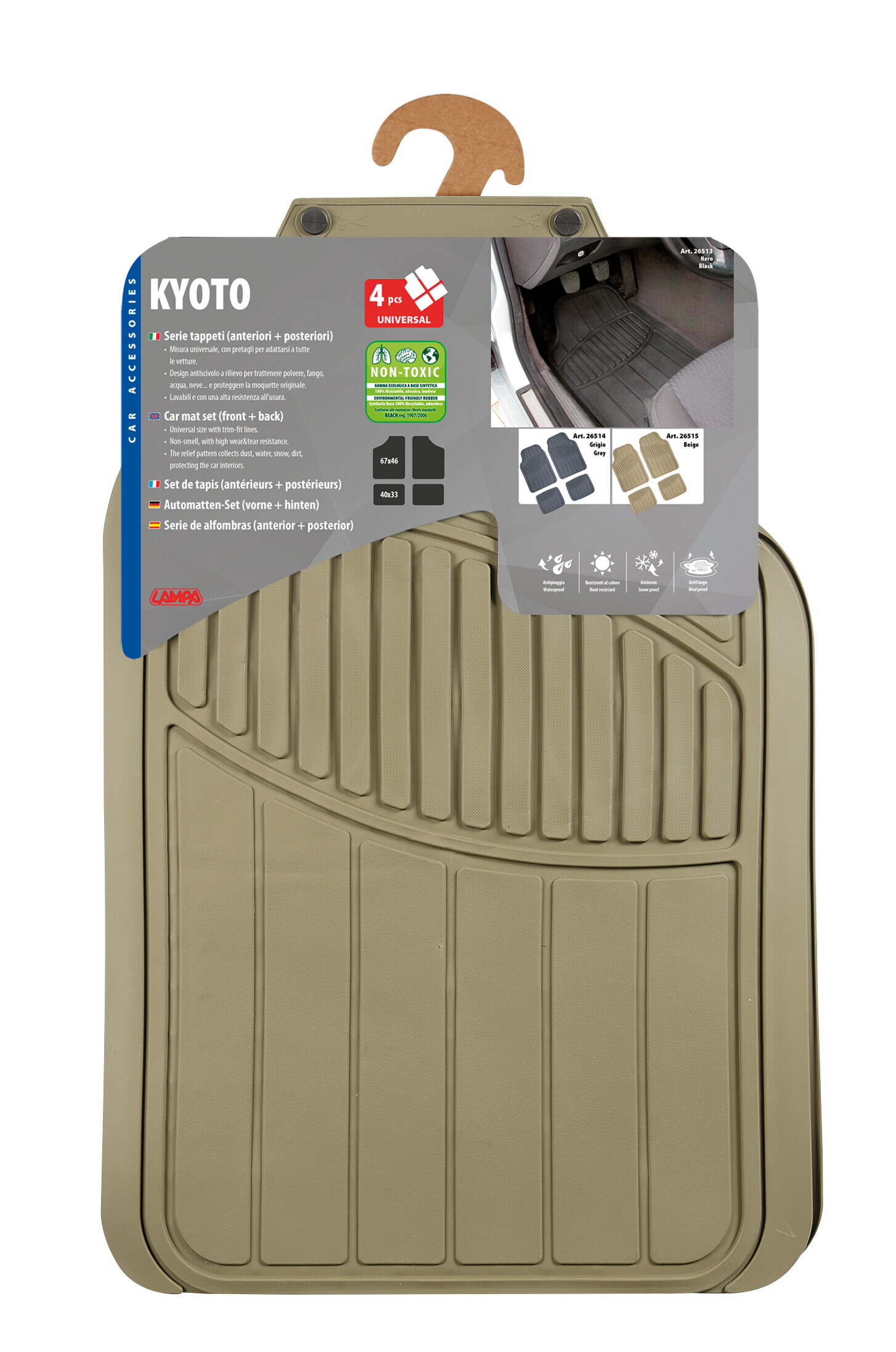 Kyoto, serie tappeti universali in pvc 4 pezzi – Beige