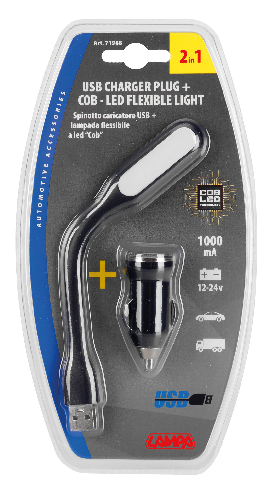 Lampada flessibile a LED COB + caricatore USB 12/24V – D/Blister 1 pz