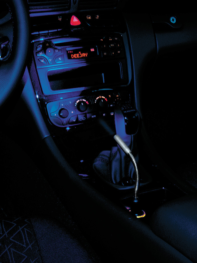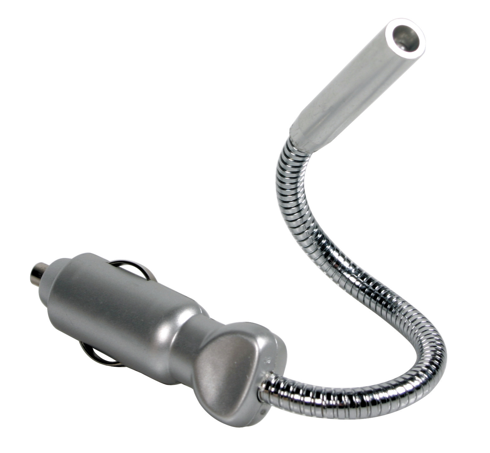 Led ad alta luminescenza con fascio luce focalizzato. Braccio in lega di alluminio da 20 cm snodabile fino a 45°. Collegamento alla presa accendisigari.