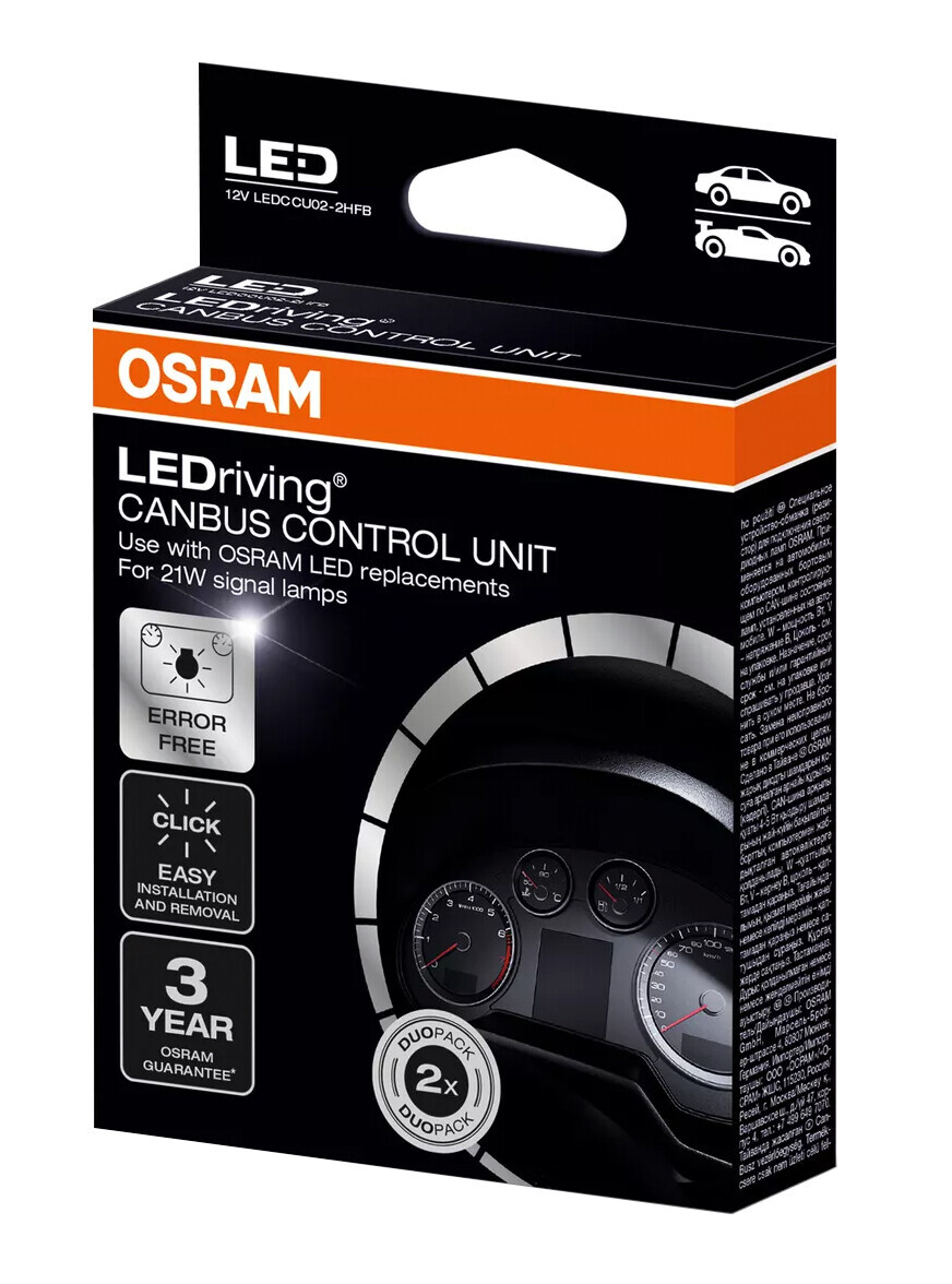 Il sistema OSRAM LEDriving CANBUS CONTROL UNIT esclude il sistema di rilevazione dei guasti delle lampade per auto quando si usa una lampada LED retrofit. L’unità di controllo è facile da installare ed è adatta alla maggior parte dei veicoli con sistema di rilevazione automatica dei guasti delle lampade. Confezione da due pezzi
