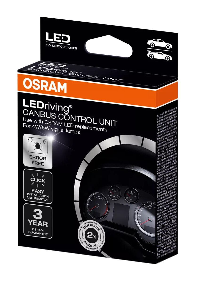 Il sistema OSRAM LEDriving CANBUS CONTROL UNIT esclude il sistema di rilevazione dei guasti delle lampade per auto quando si usa una lampada LED retrofit. L’unità di controllo è facile da installare ed è adatta alla maggior parte dei veicoli con sistema di rilevazione automatica dei guasti delle lampade. Confezione da due pezzi