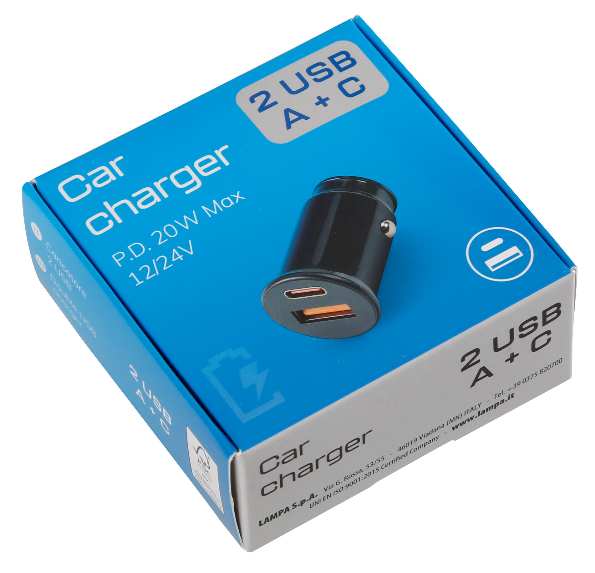 Linea Essentials, caricabatteria 2 porte Usb (A+C) – PD 20W – 12/24V – Confezione da 5 pezzi
