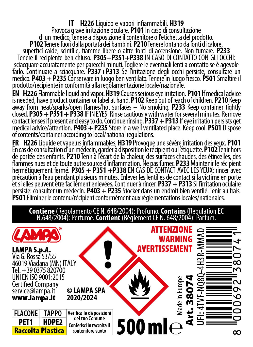 Per vaschetta lavavetro. Utilizzabile puro o diluito in base alle esigenze climatiche