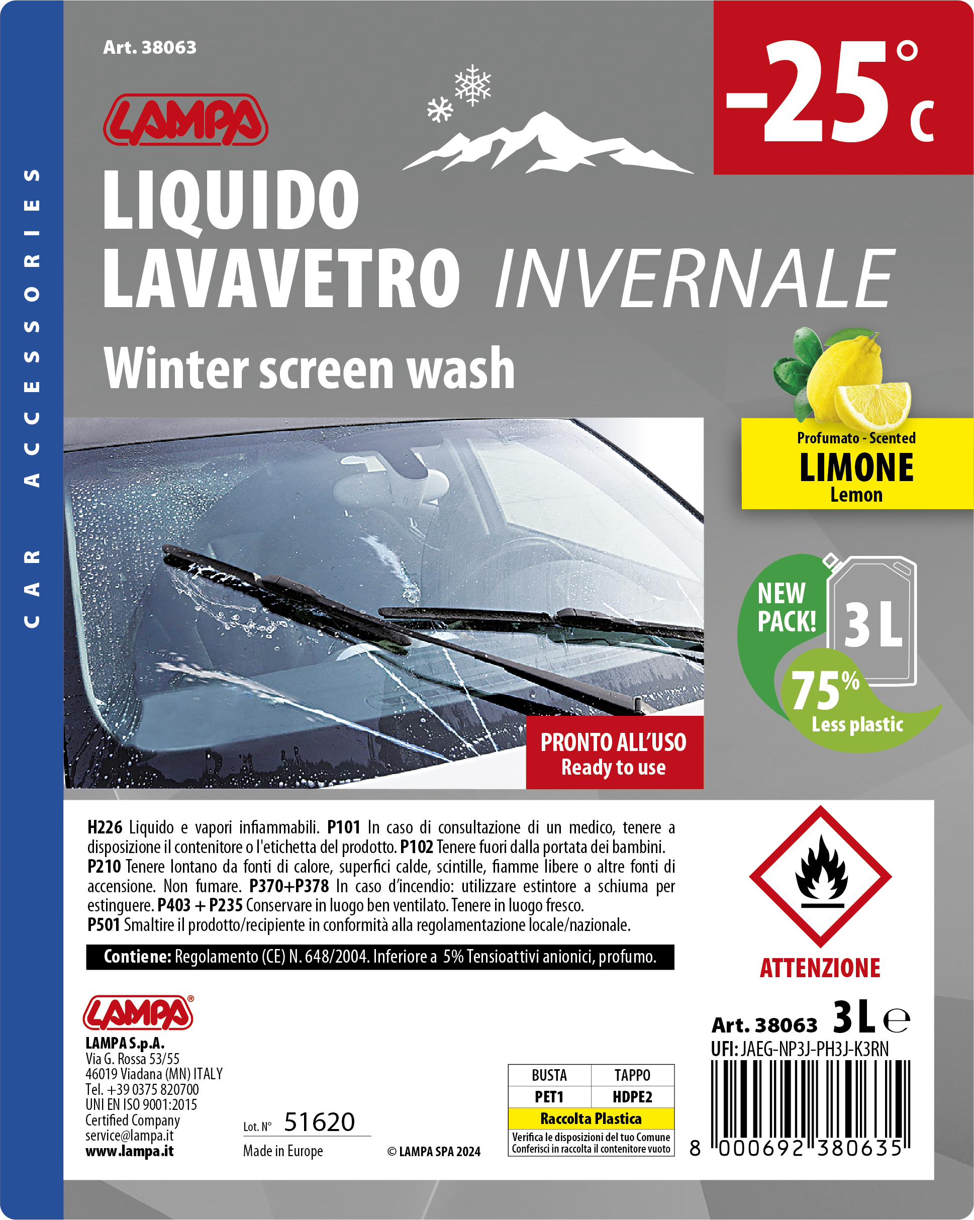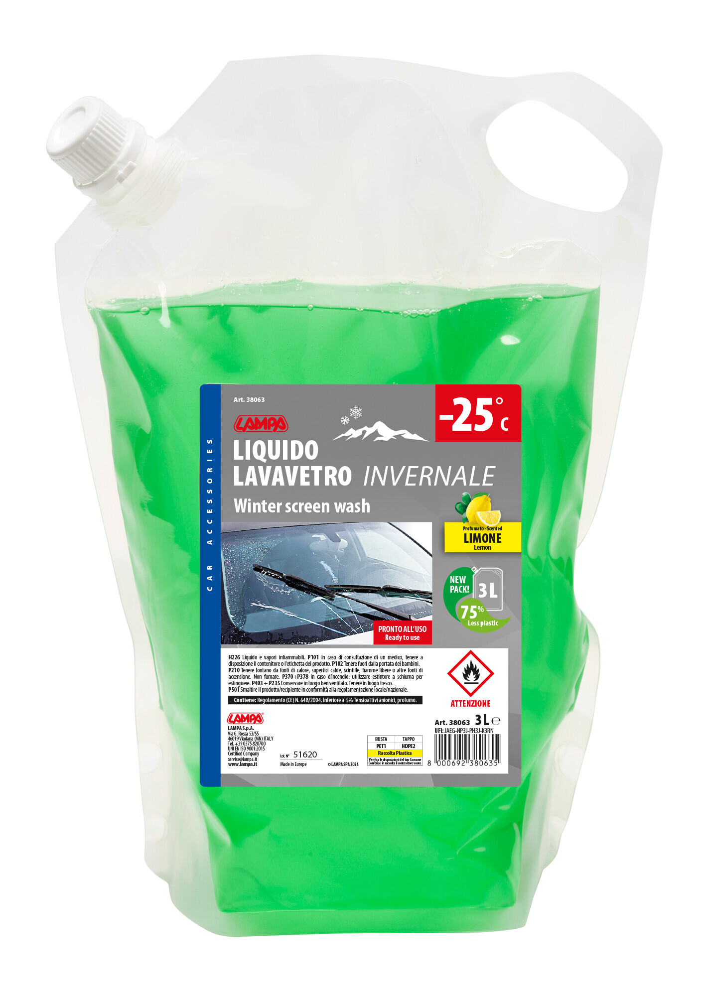 Liquido profumato pronto all’uso. Per vaschetta lavavetro. Utilizzabile puro o diluito in base alle esigenze climatiche
