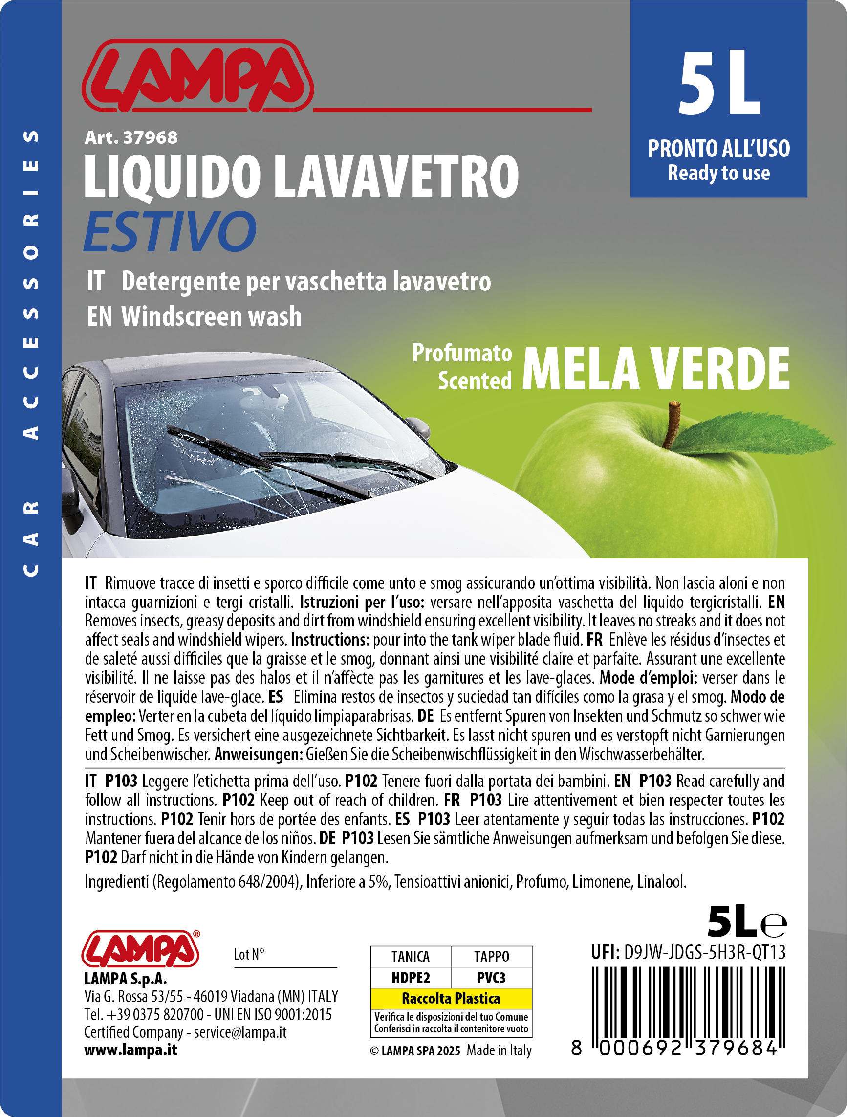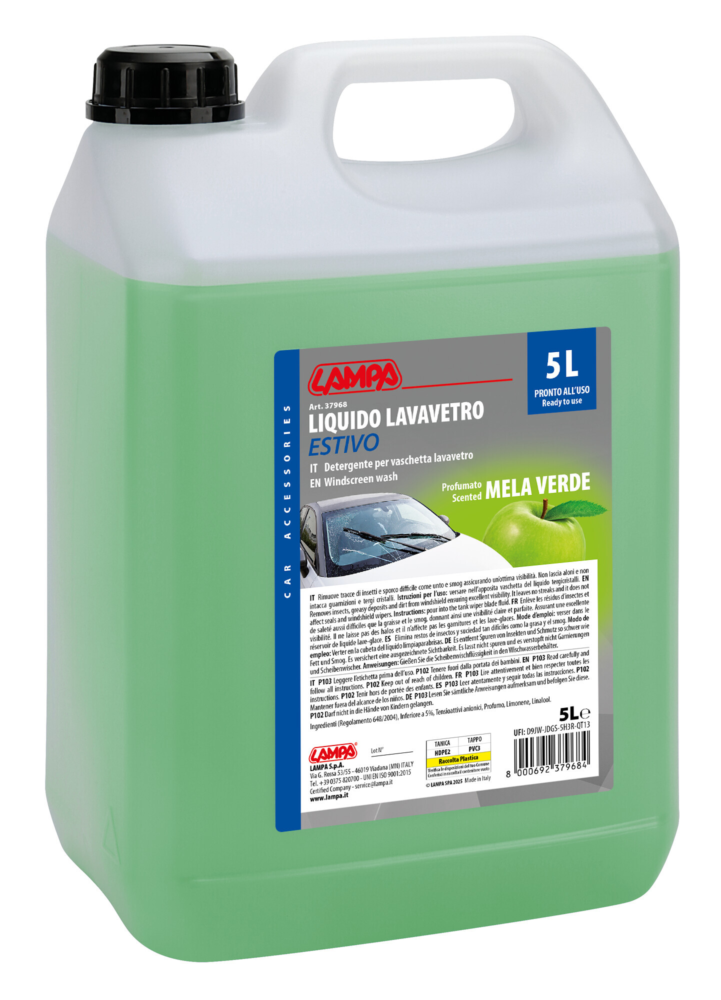 Liquido lavavetro estivo profumato, pronto all’uso – Mela Verde – 5000 ml