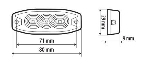 Luce di segnalazione multifunzione a 3 Led, 9/32V – 80×29 mm – Arancio