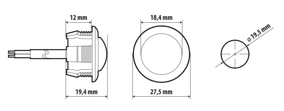 Montaggio ad incasso. Foro Ø 19,5 mm