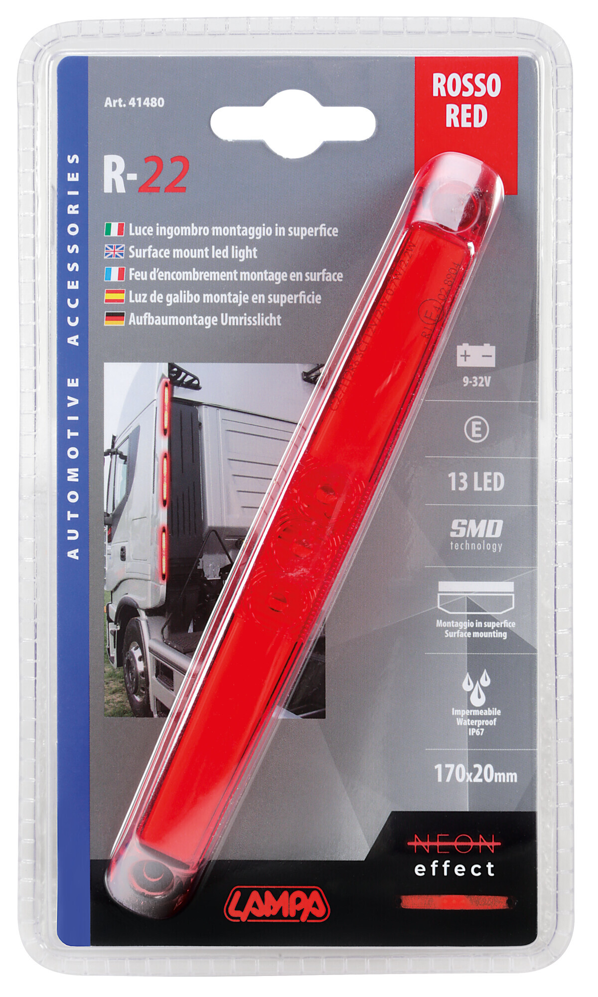 Luce ingombro – 13 Led – 12/24V – Rosso
