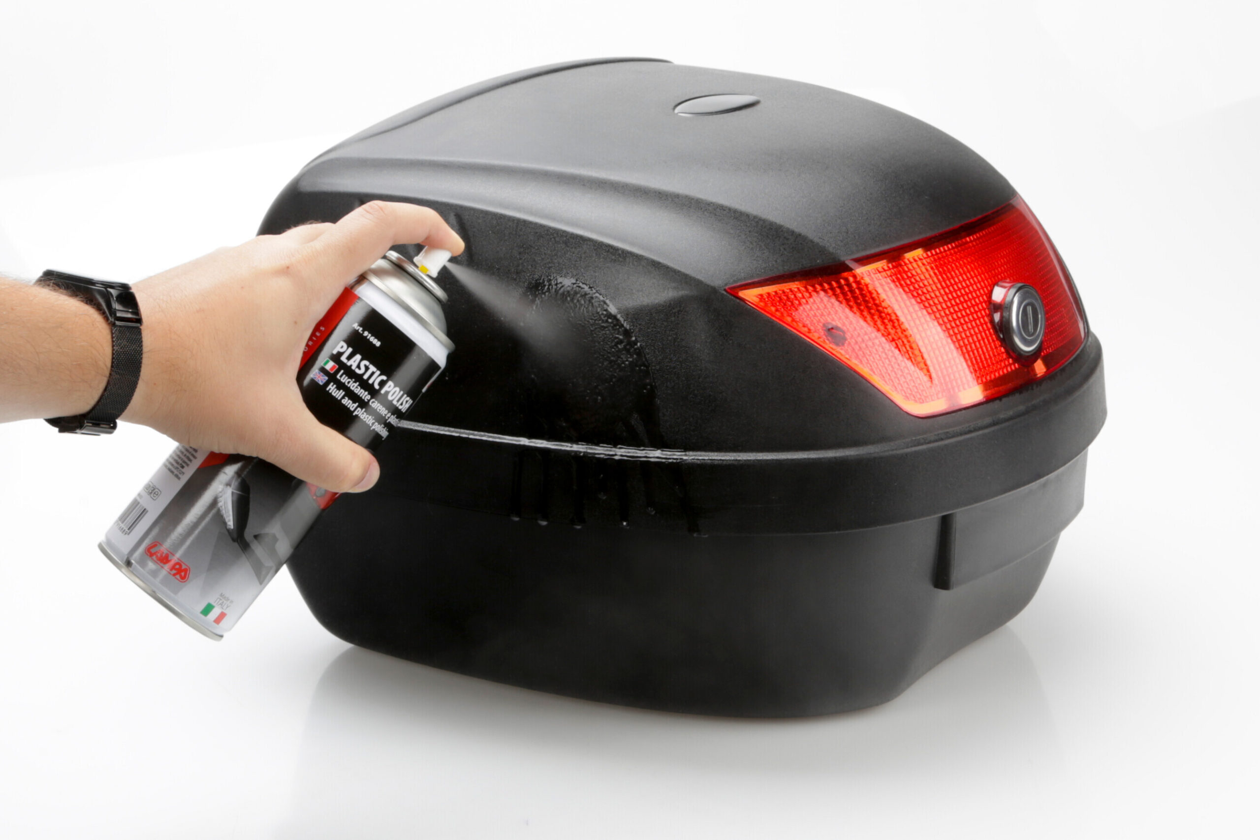 Lucidante spray a base di siliconi e resine. Ottimo per lucidare, ravvivare e proteggere tutte le parti in plastica e le carene della