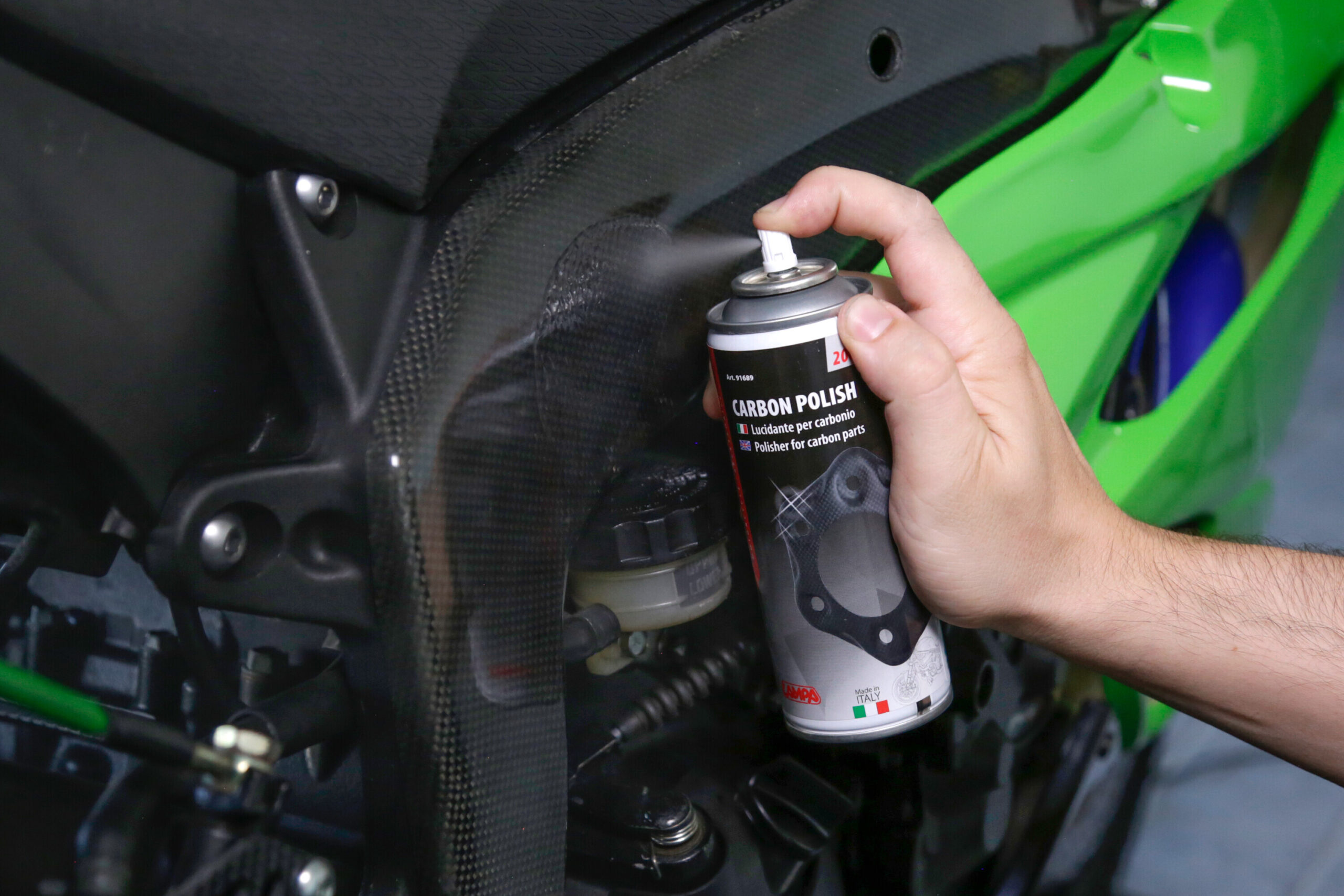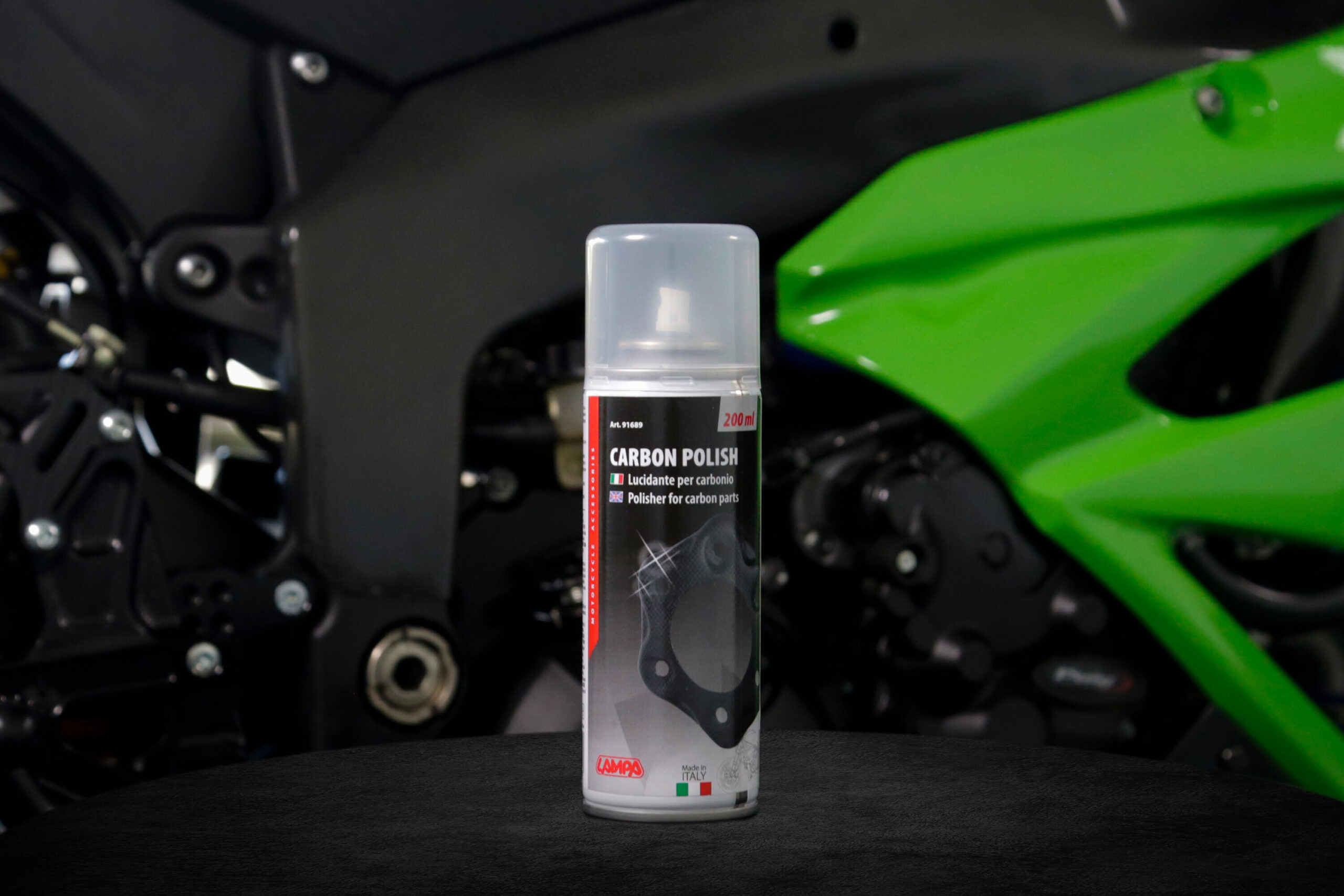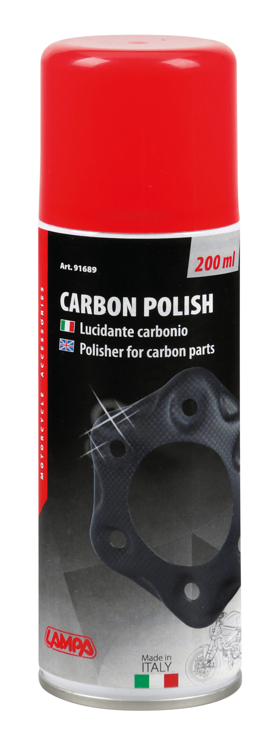 Miscela polifunzionale di oli sintetici, resine e cere filmanti in soluzione acquosa. Lucida le parti in carbonio della Vostra moto. La sua particolare formulazione è stata studiata per formare un film protettivo il quale preserva i particolari trattati dagli agenti atmosferici.