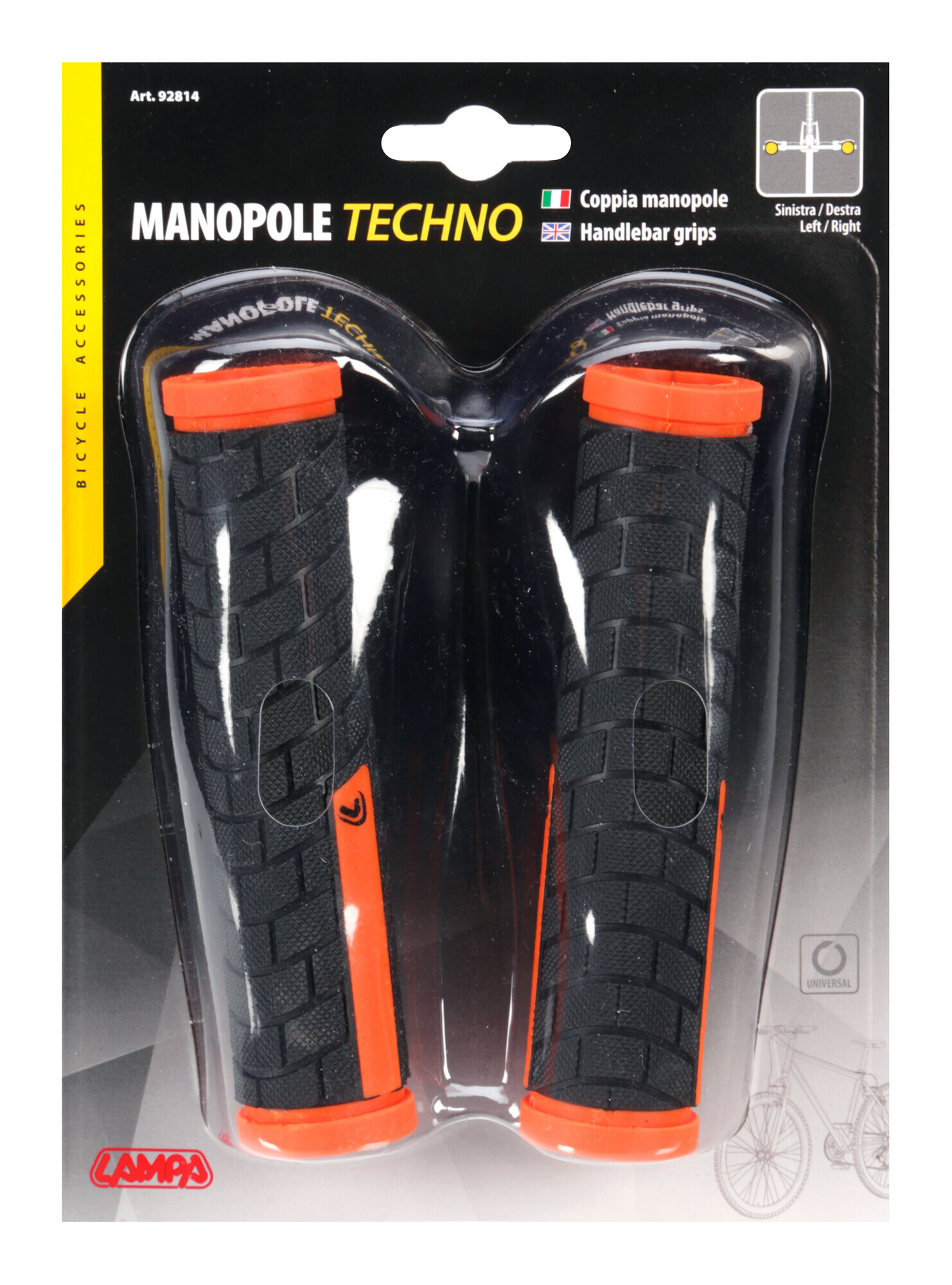 Coppia manopole universali in TPE. Antivibrazioni, comode e antiscivolo. Ottima presa in tutte le condizioni. Complete di tappi copriforo.