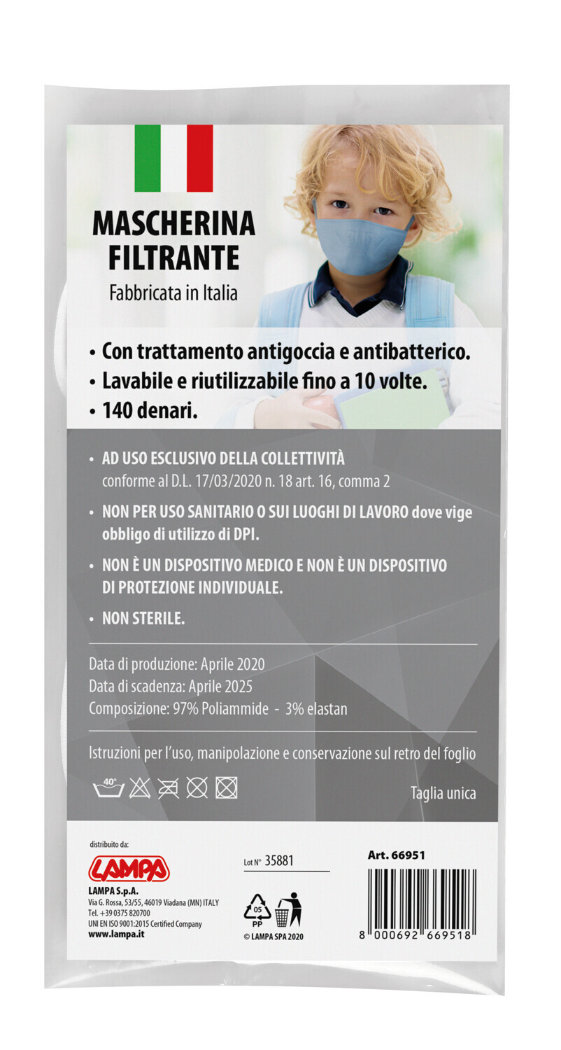 Mascherina filtrante lavabile – Bianco – 140 Den