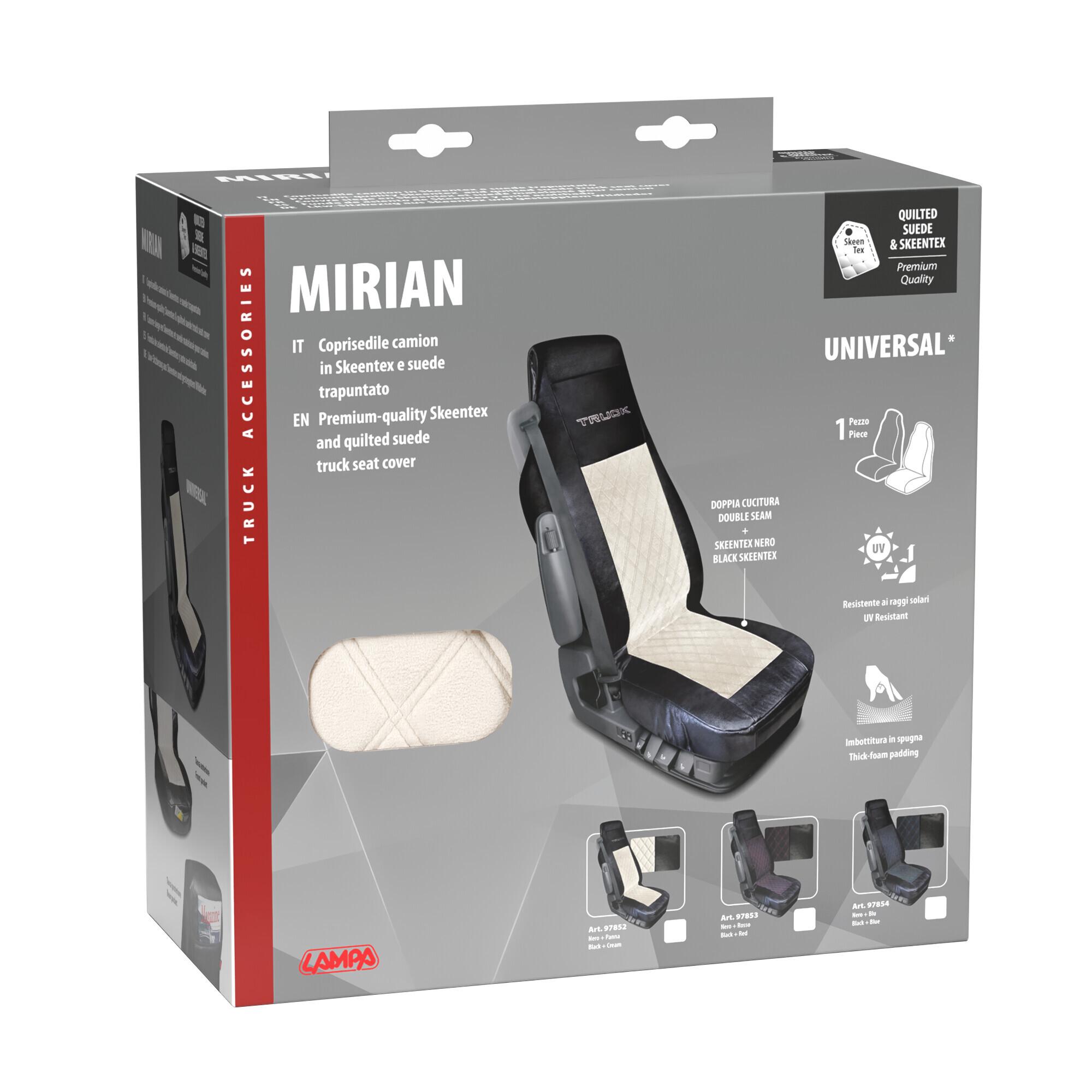 • Universale per la maggior parte dei camion con sedili standard.