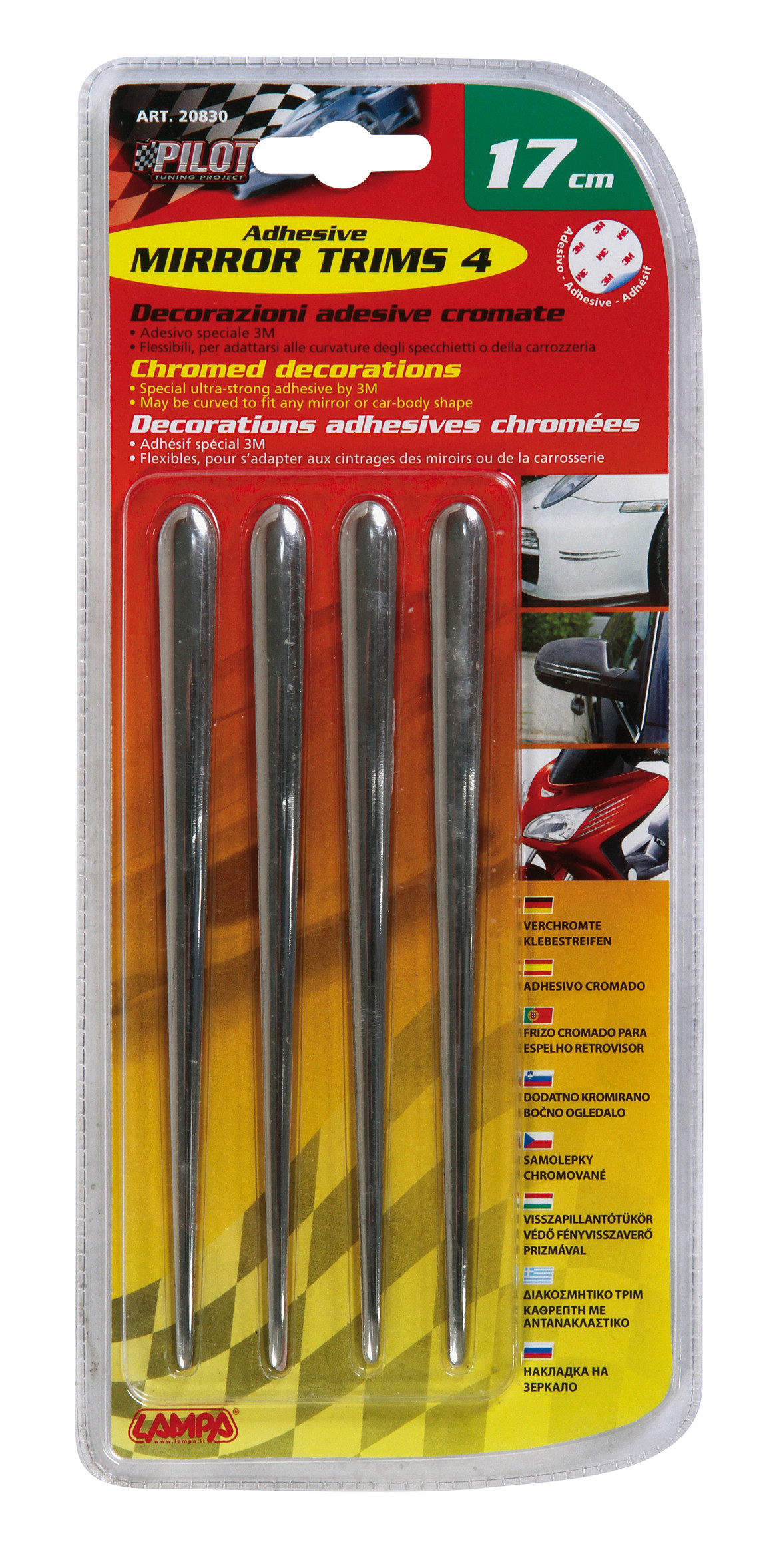 Mirror-Trims 4, decorazioni adesive cromate, 4 pz – 170 mm