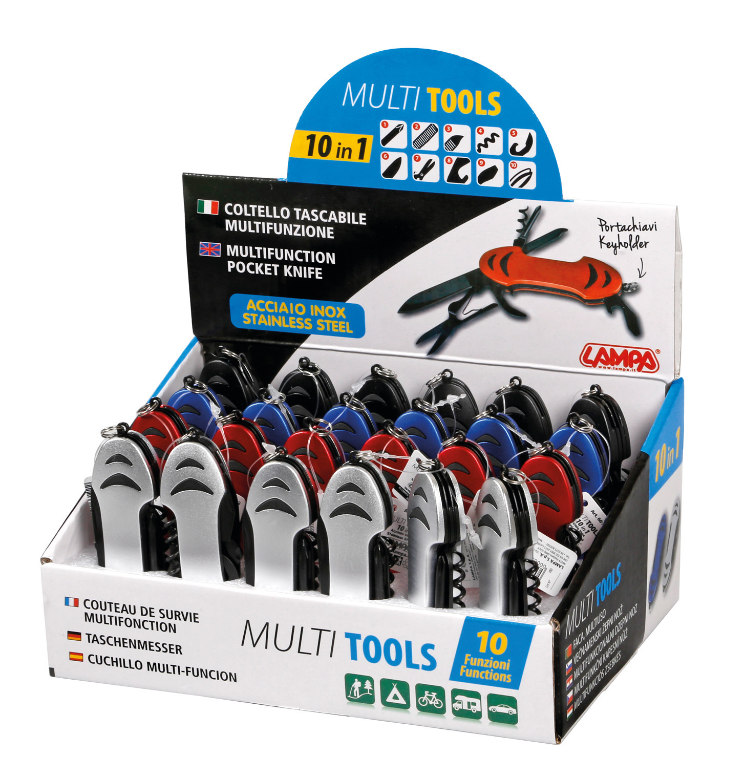 Pocket 15 in 1, coltelli multifunzione tascabili, espositore 18 pz