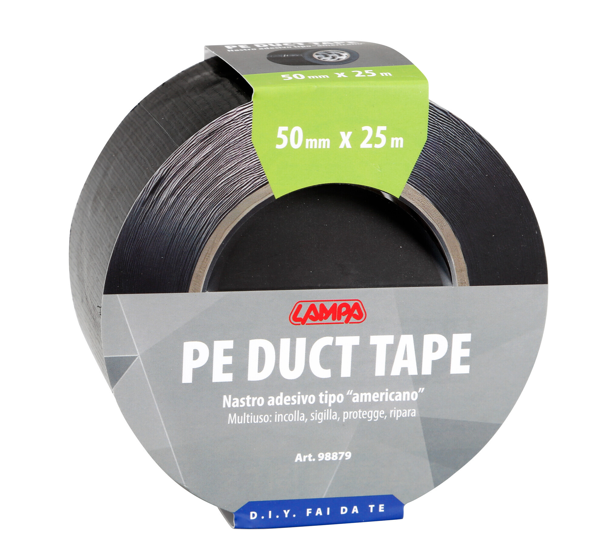 Multiuso, universale, incolla, sigilla, protegge, ripara… Prodotto in polietilene rinforzato ad alta resistenza meccanica, impermeabile e conformabile. Si strappa con le mani senza l’ausilio di attrezzi da taglio. Alta adesività, idoneo a tutte le superfici lisce e ruvide.