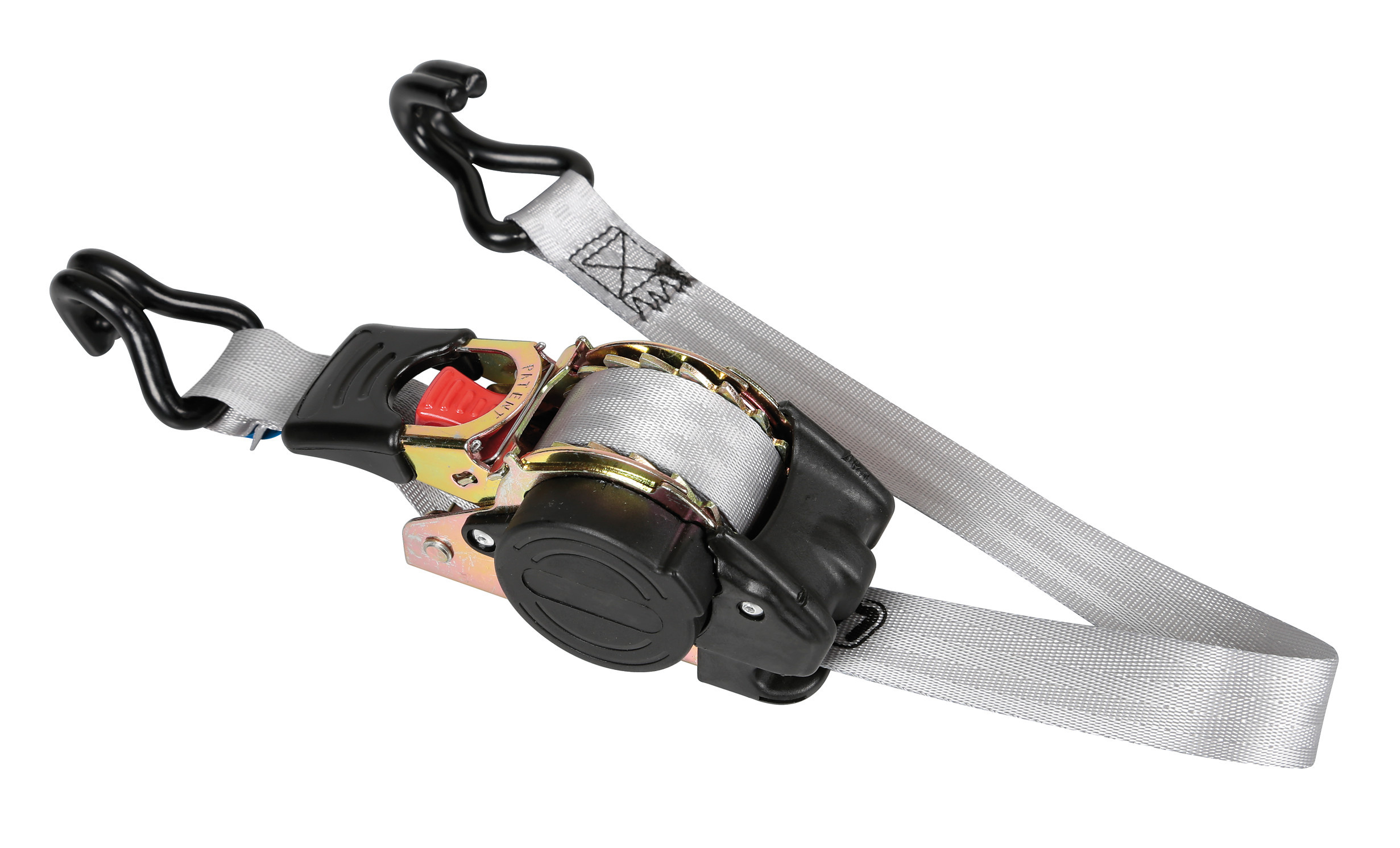 Nastro tensore con cricchetto autoretrattile, doppio gancio – 2,5×300 cm