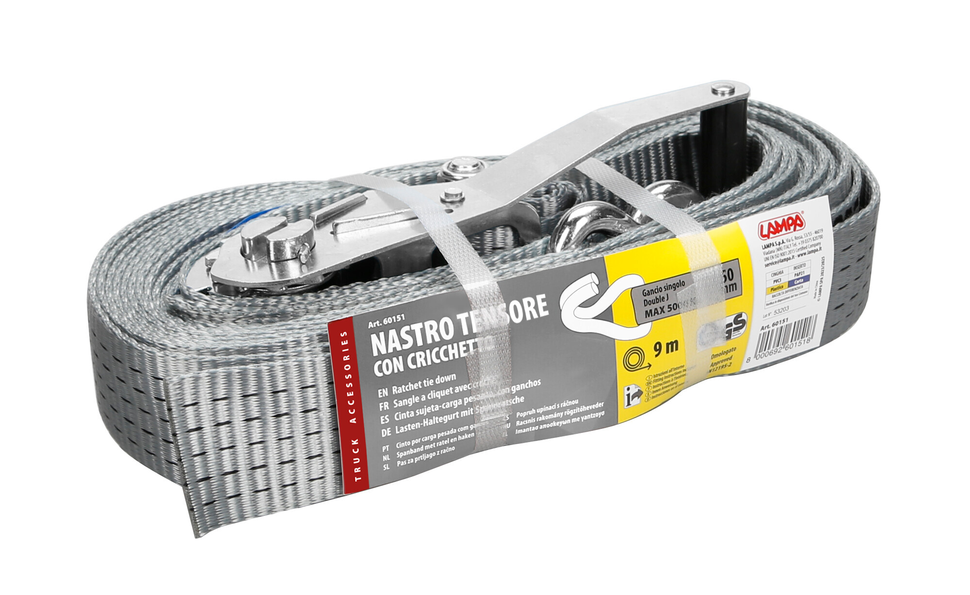 Nastro tensore con cricchetto – Gancio singolo – 9 m