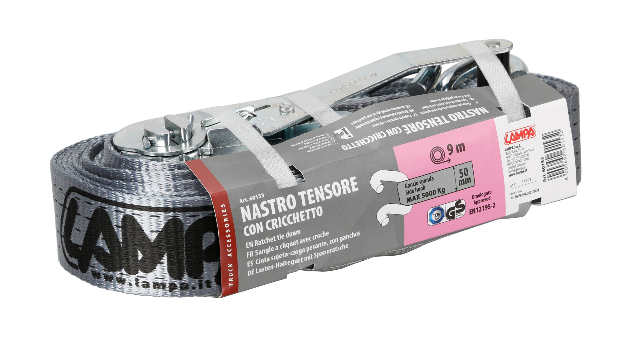 Nastro tensore con cricchetto – Gancio sponda – 9 m