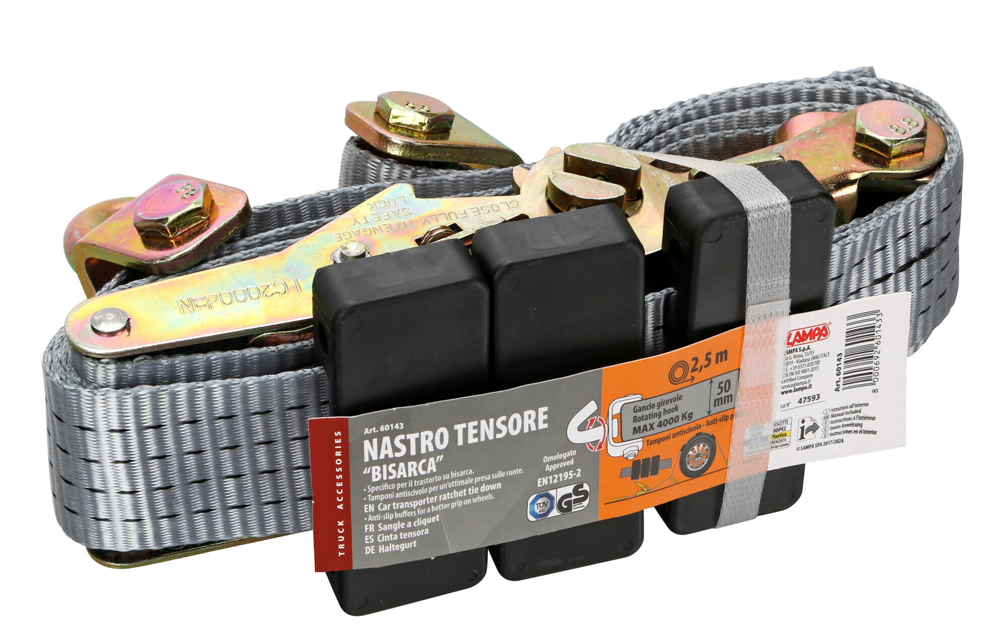Nastro tensore con cricchetto per bisarca, gancio girevole – 4000 Kg – 5×250 cm