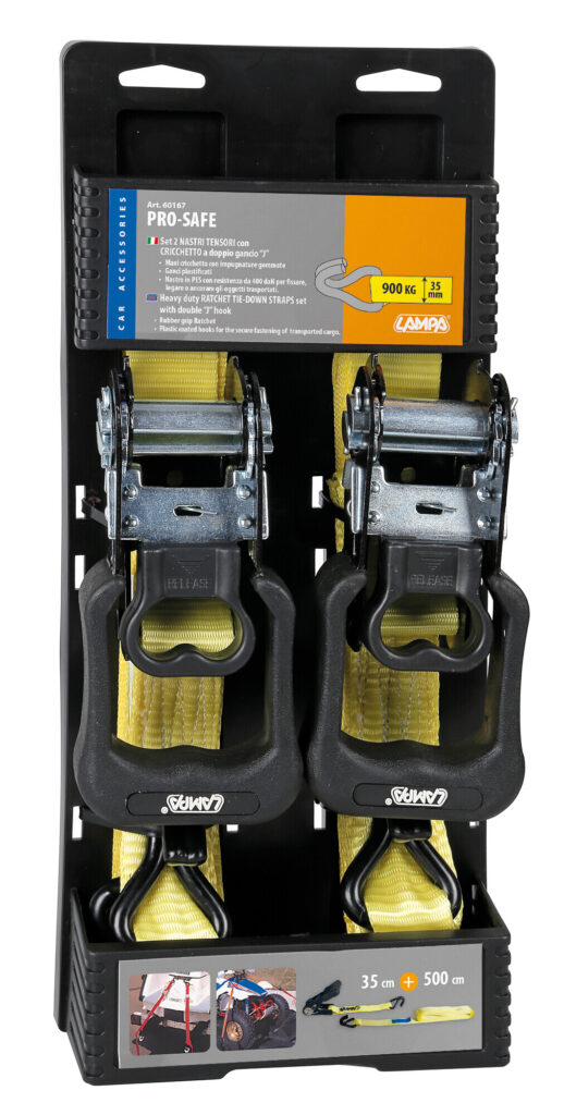 Pro-Safe, set 2 nastri tensori con cricchetto a doppio gancio – 5 m