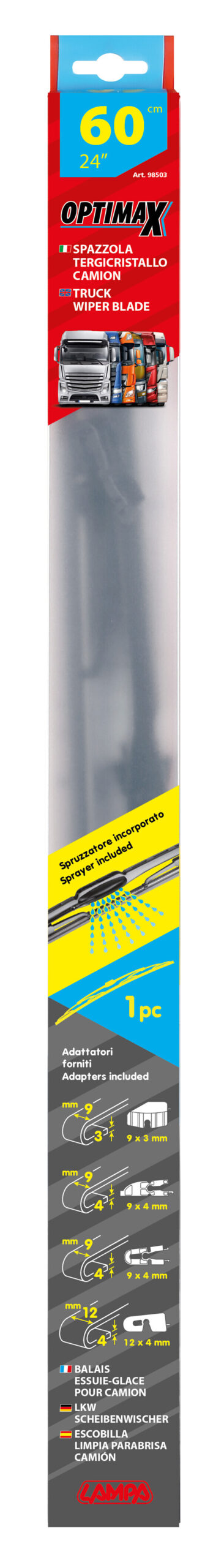 Optimax, spazzola tergicristallo per camion e furgoni – 60 cm (24″) – Con spruzzatori – 1 pz