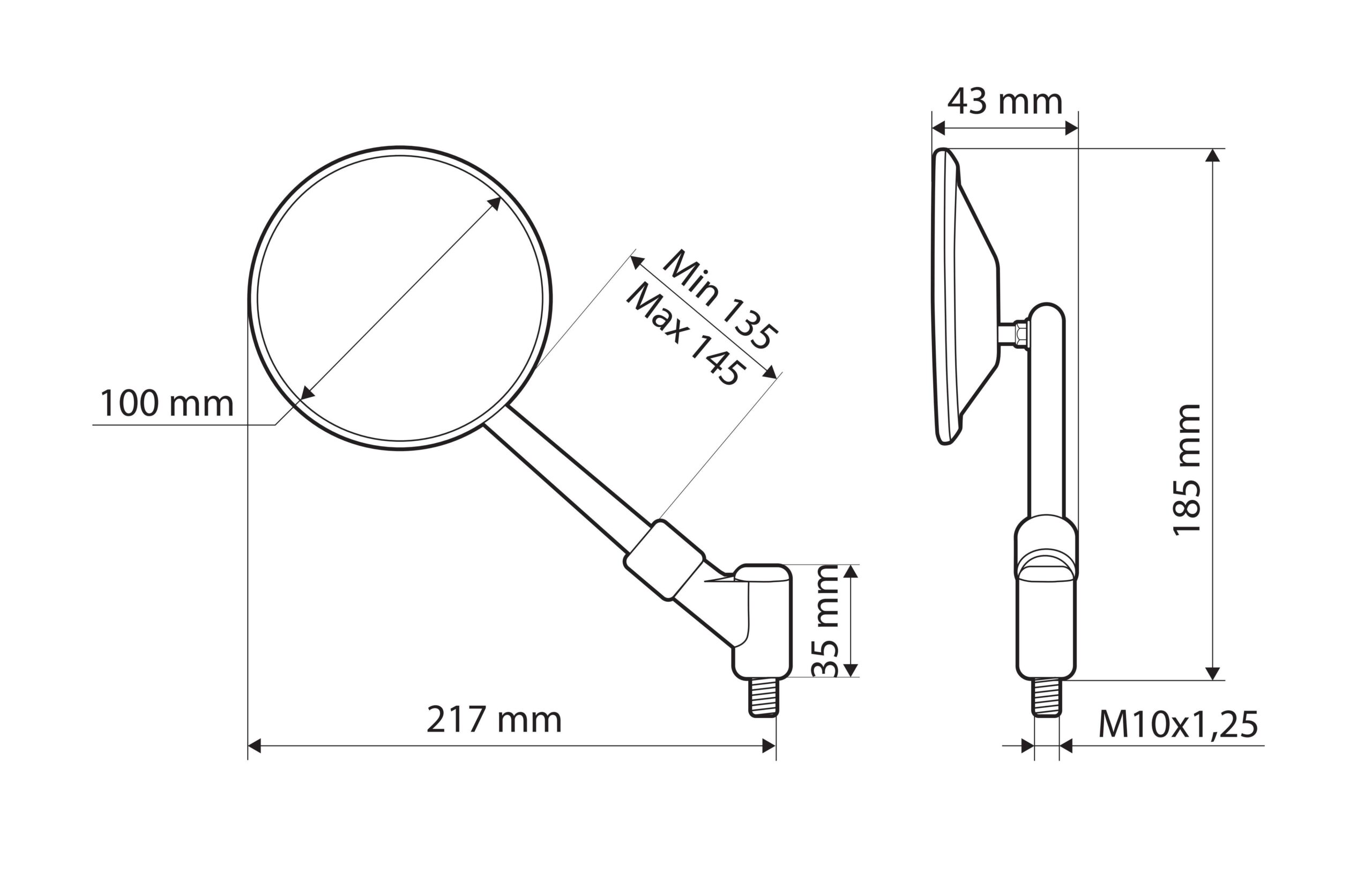 Estensore e sollevatore specchi moto – Filetto M10 sinistro
