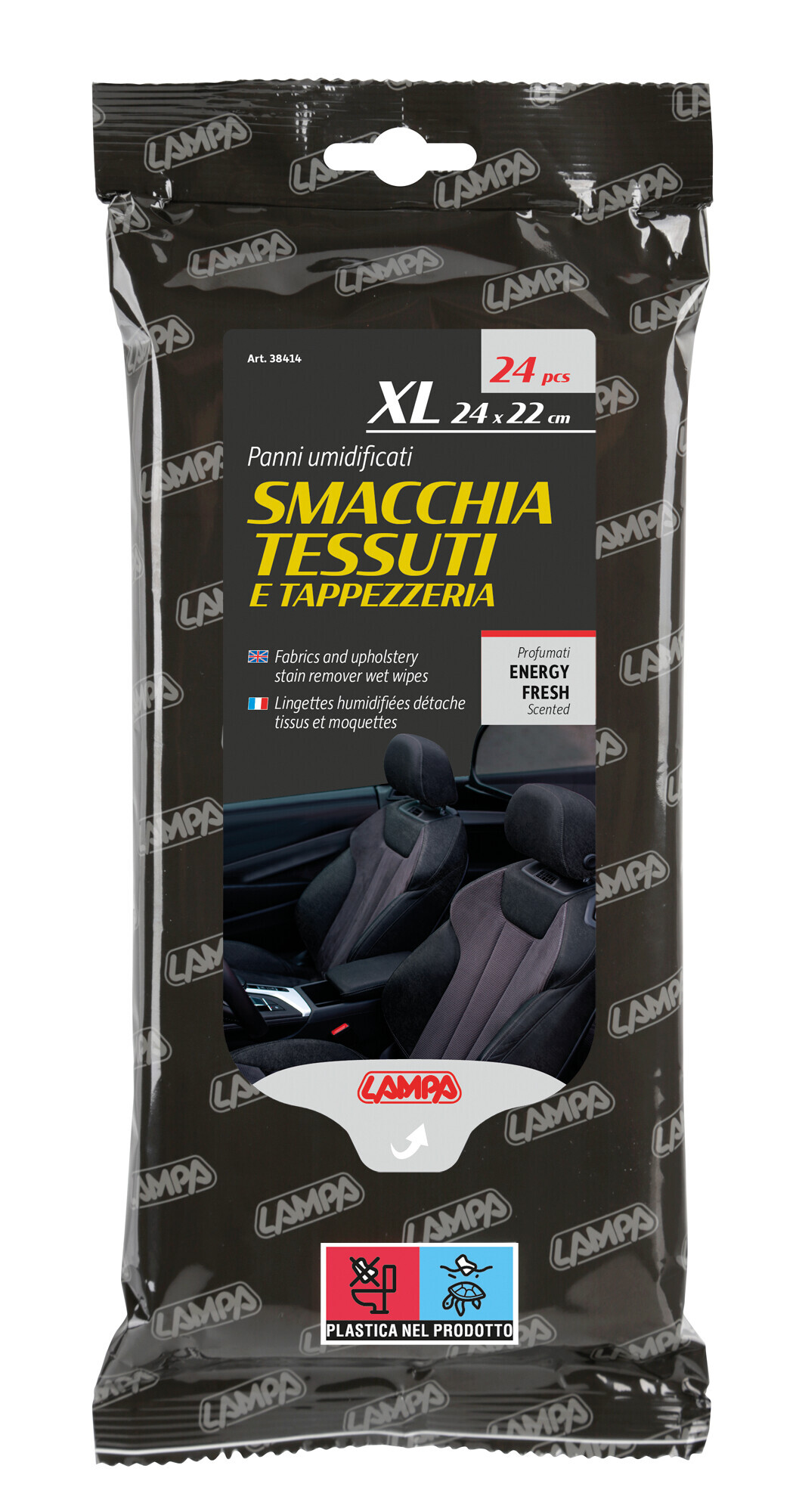 Panni umidificati smacchia tessuti e tappezzeria – 24 pz – 24×22 cm