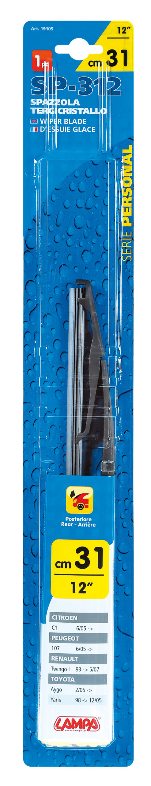 Personal, spazzola tergicristallo – SP312 – 31 cm (12″) – posteriore – 1 pz