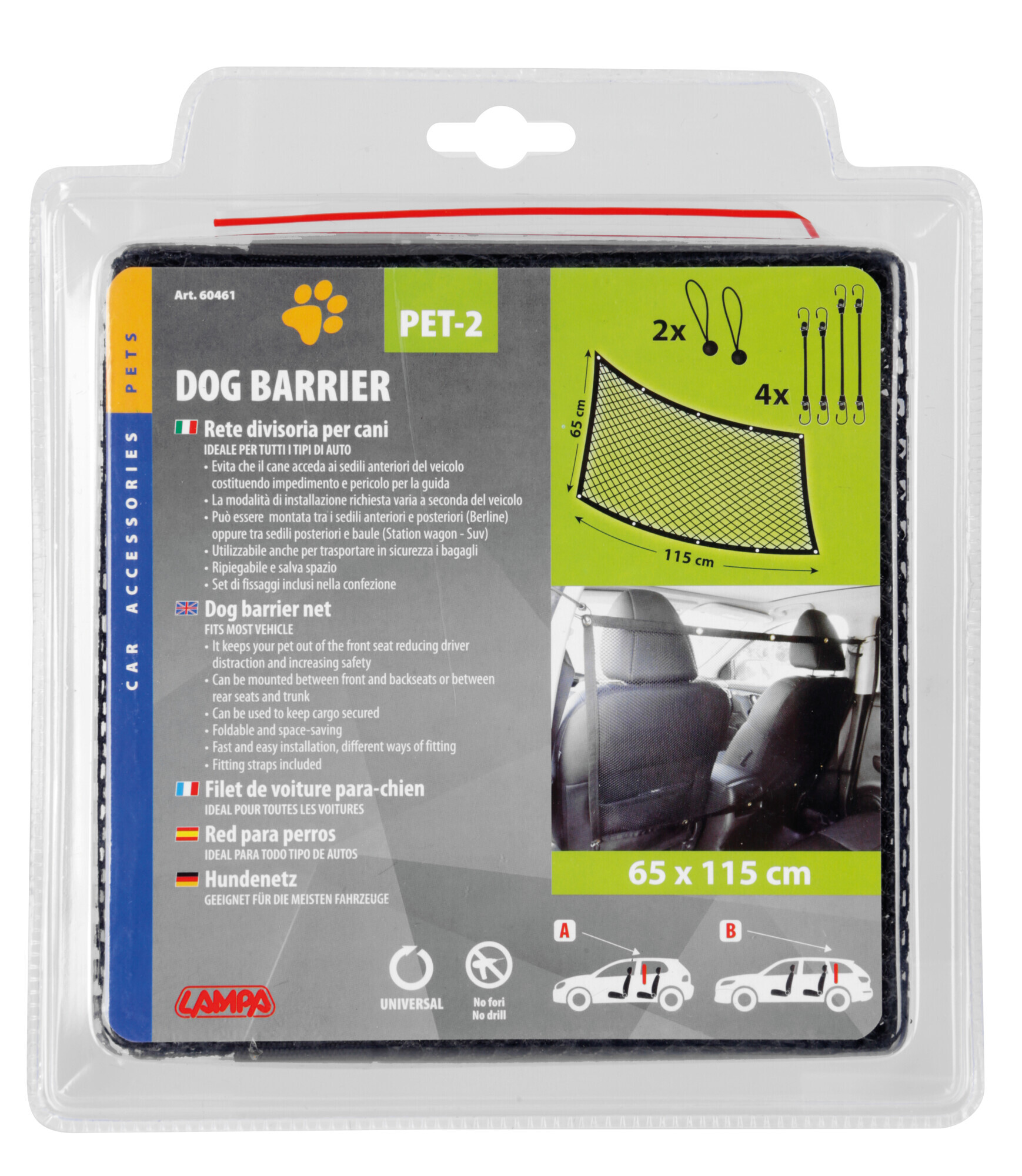 • Può essere montata tra i sedili anteriori e posteriori (berline) oppure tra sedili posteriori e baule (station wagon, suv).