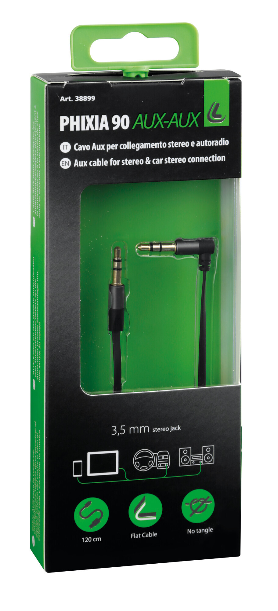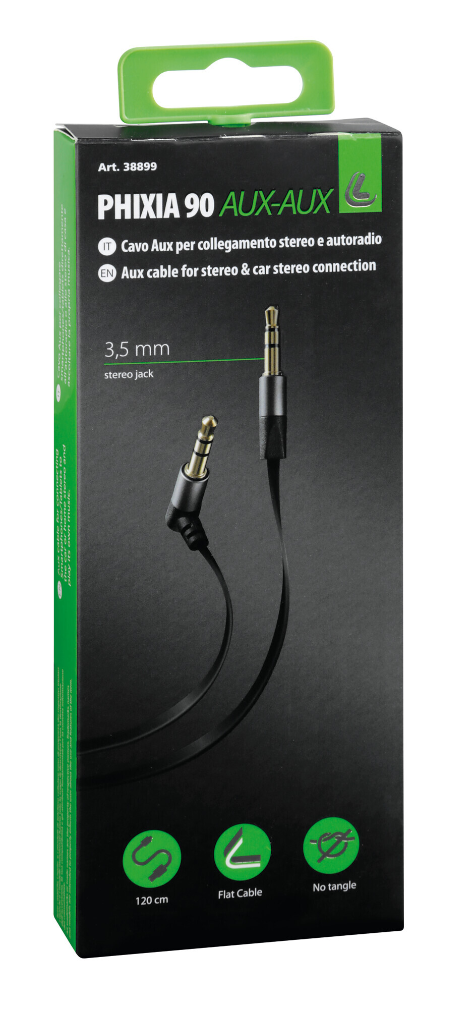 Phixia 90°, cavo AUX-AUX – 120 cm – Nero