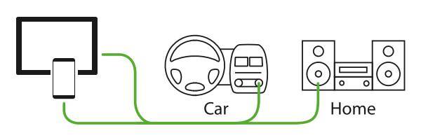 Cavo AUX piatto antigroviglio da 120 cm con jack stereo da 3,5 mm. Per collegare smartphones/tablets direttamente all’autoradio o allo stereo di casa e ascoltare la propria musica. Compatibile con iPhone, smartphones, tablets, mp3 players.