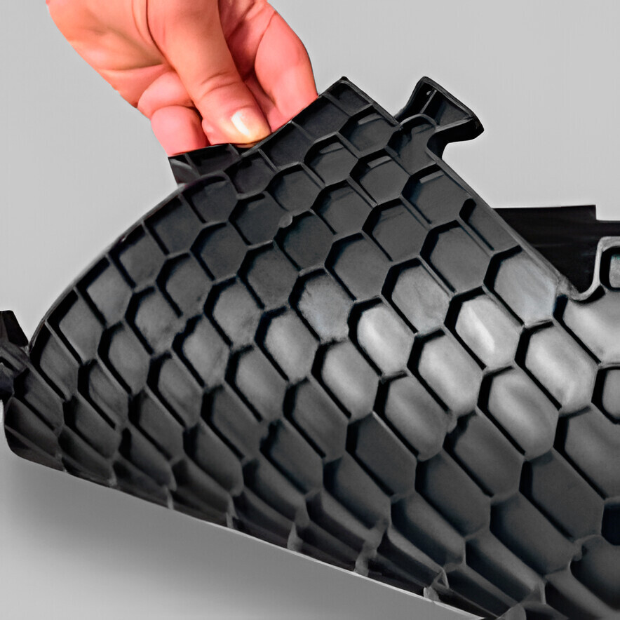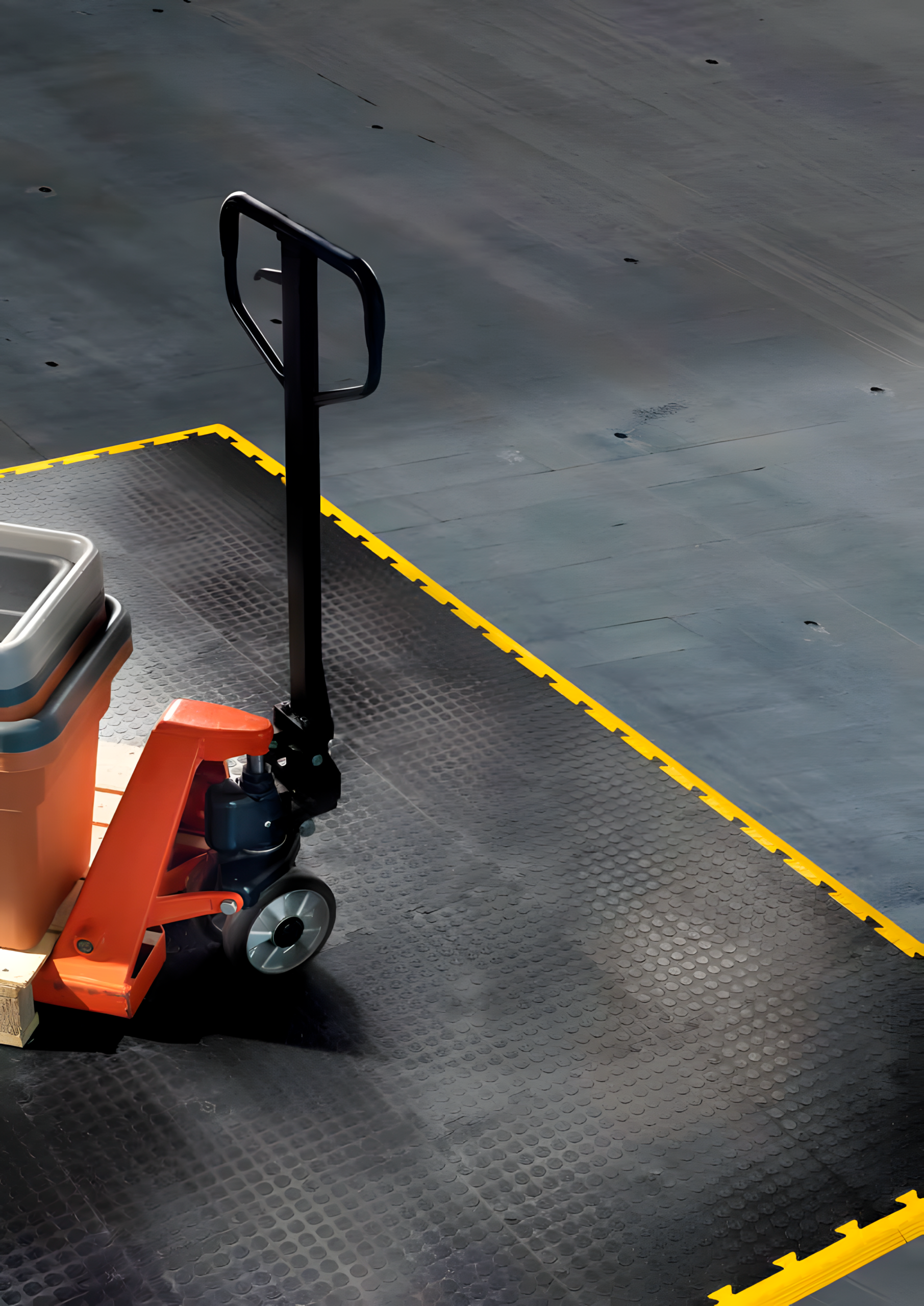 Superficie con disegno in rilievo “a bolle”. Ideale per laboratori, garages, palestre, sale gioco, sale espositive, stabilimenti, rivestimento temporaneo, piano carico furgoni, luoghi pubblici.