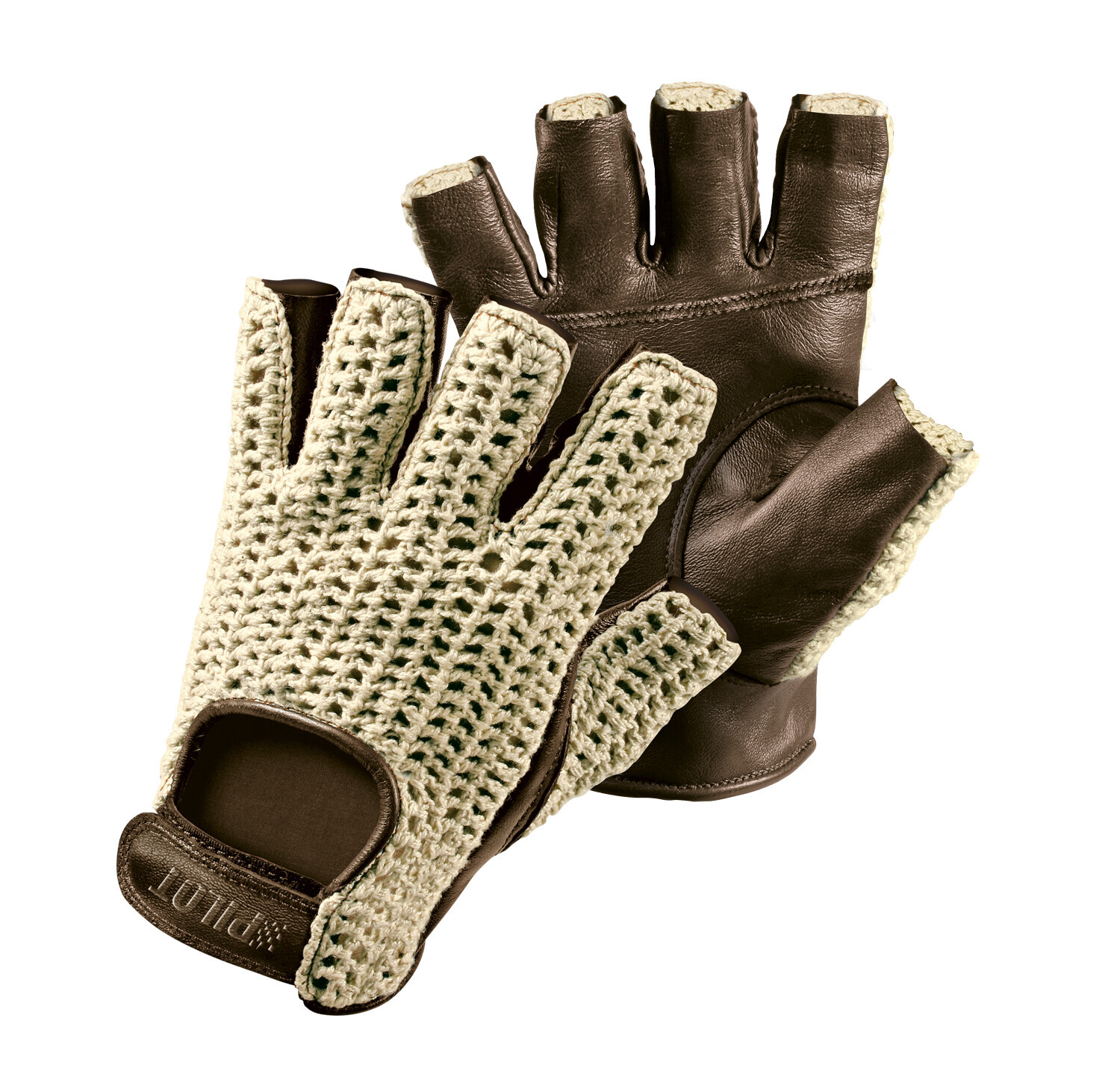Pilot-1, guanti guida mezze dita – L – Marrone