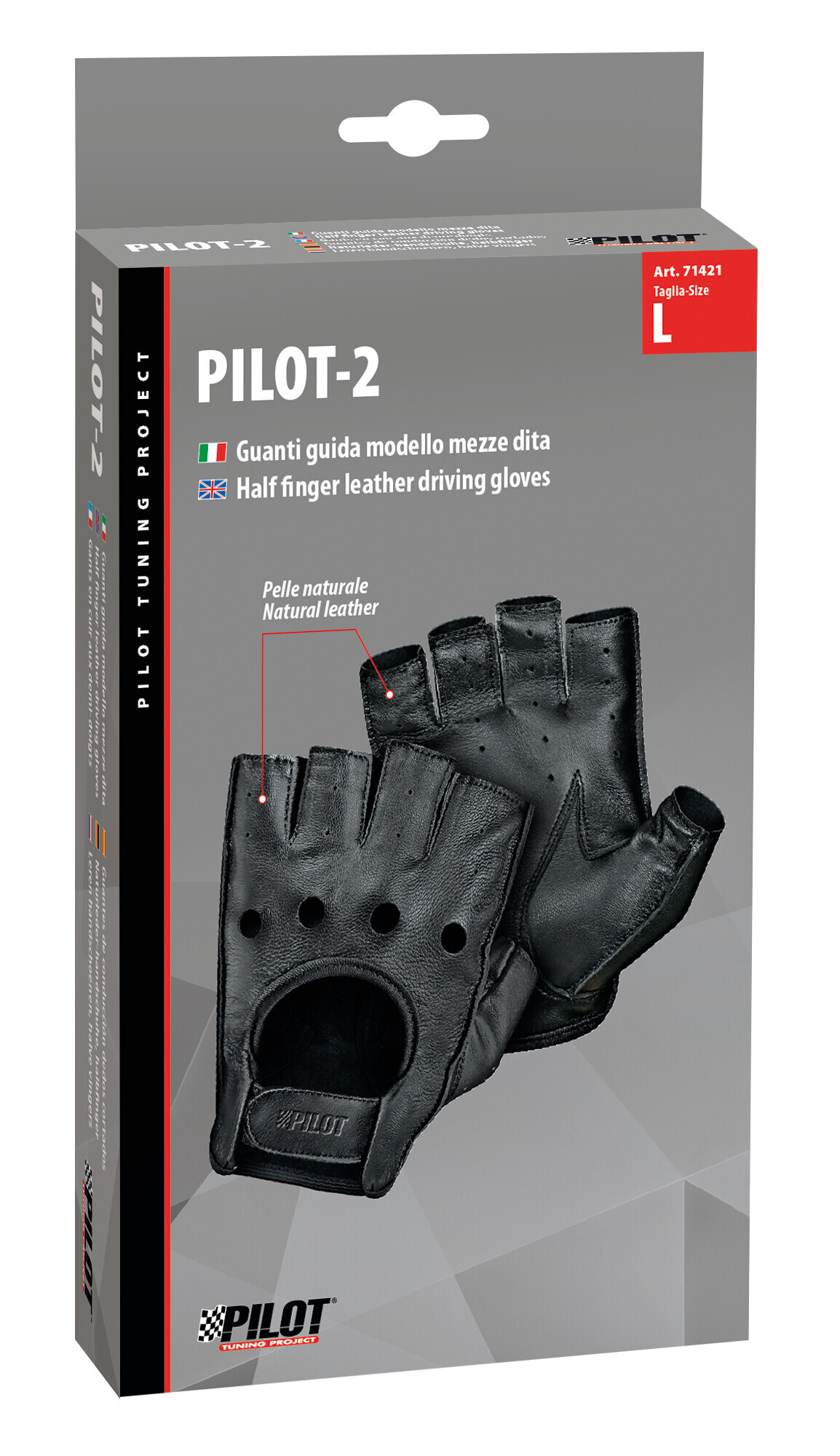 Pilot-2, guanti guida mezze dita – L – Nero