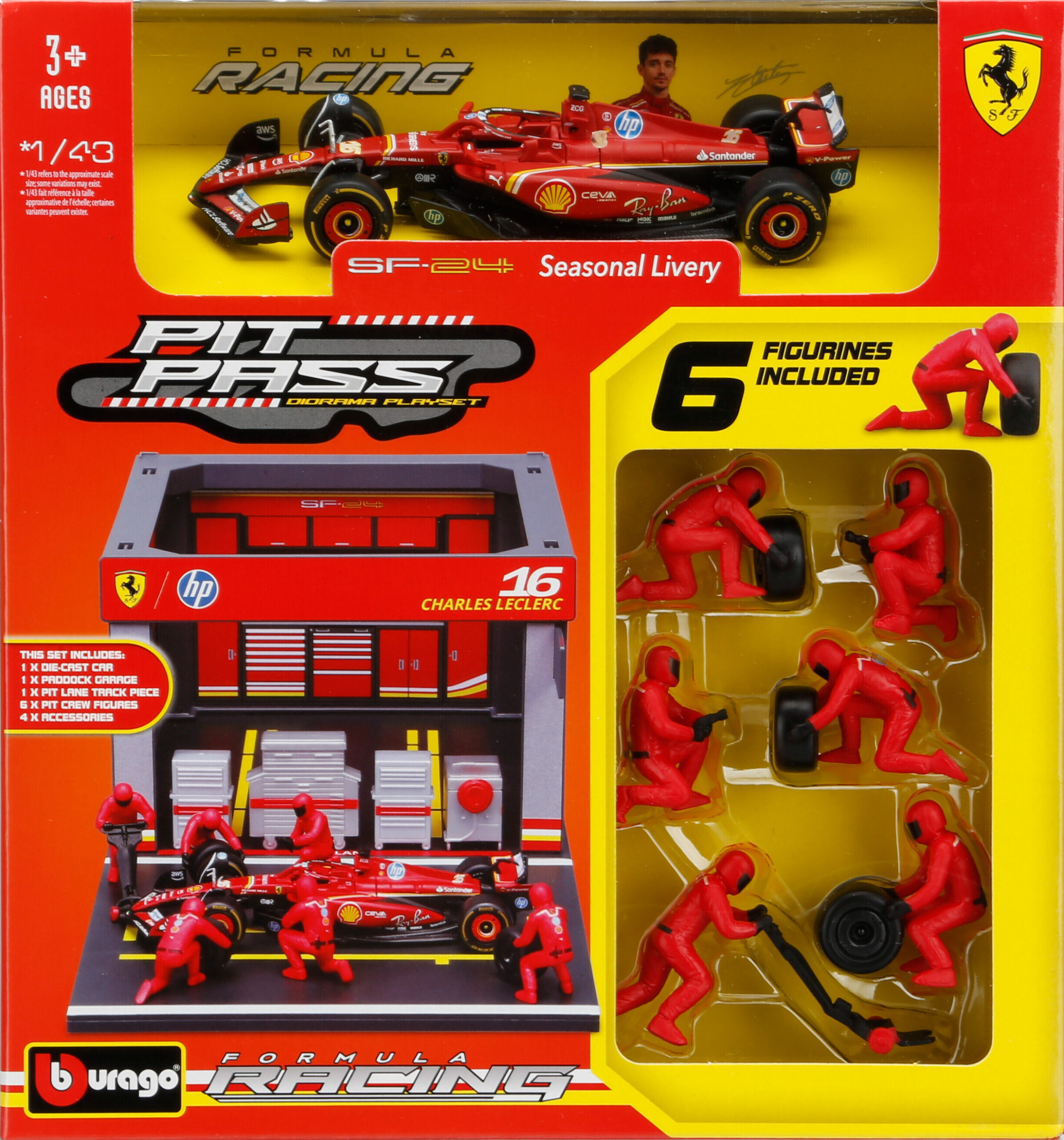 Pit Stop Ferrari SF-24 Leclerc, Burago, scala 1:43